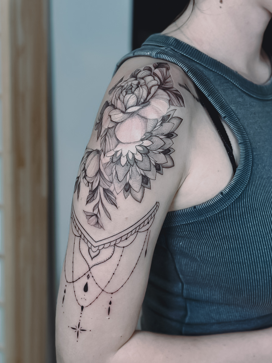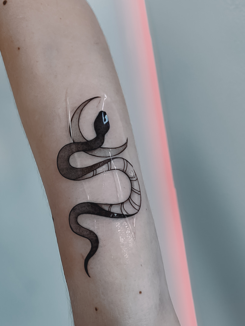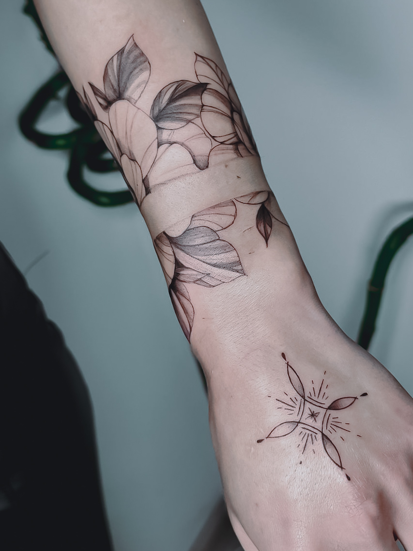Dobrý den všem! Jmenuji se Alina, jsem tatérka a v tetovacím průmyslu pracuji již 6 let. Mým koníčkem je moje práce. Tuto profesi jsem si vybrala, protože věřím, že tělo je chrám, a jako věřící jsem zvyklá, že chrámy jsou krásně vymalované, takže v současné době je smyslem mého života být vaším osobním Michelangelem! Můj oblíbený styl je minimalistické tetování, tenké linie nebo hustá černá práce! Pracuji především technikou whipscaping a také kreslím jednotlivé skici. Těším se na vás na našem sezení!