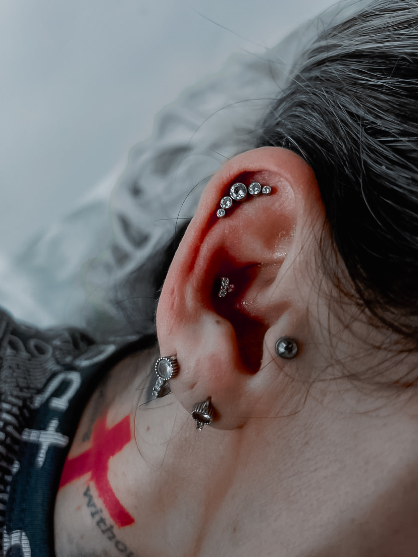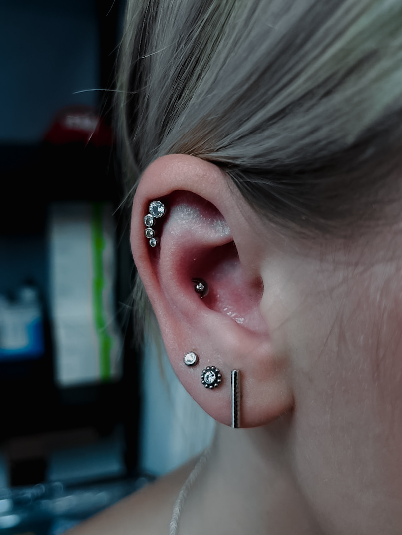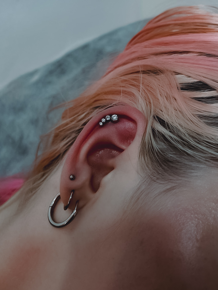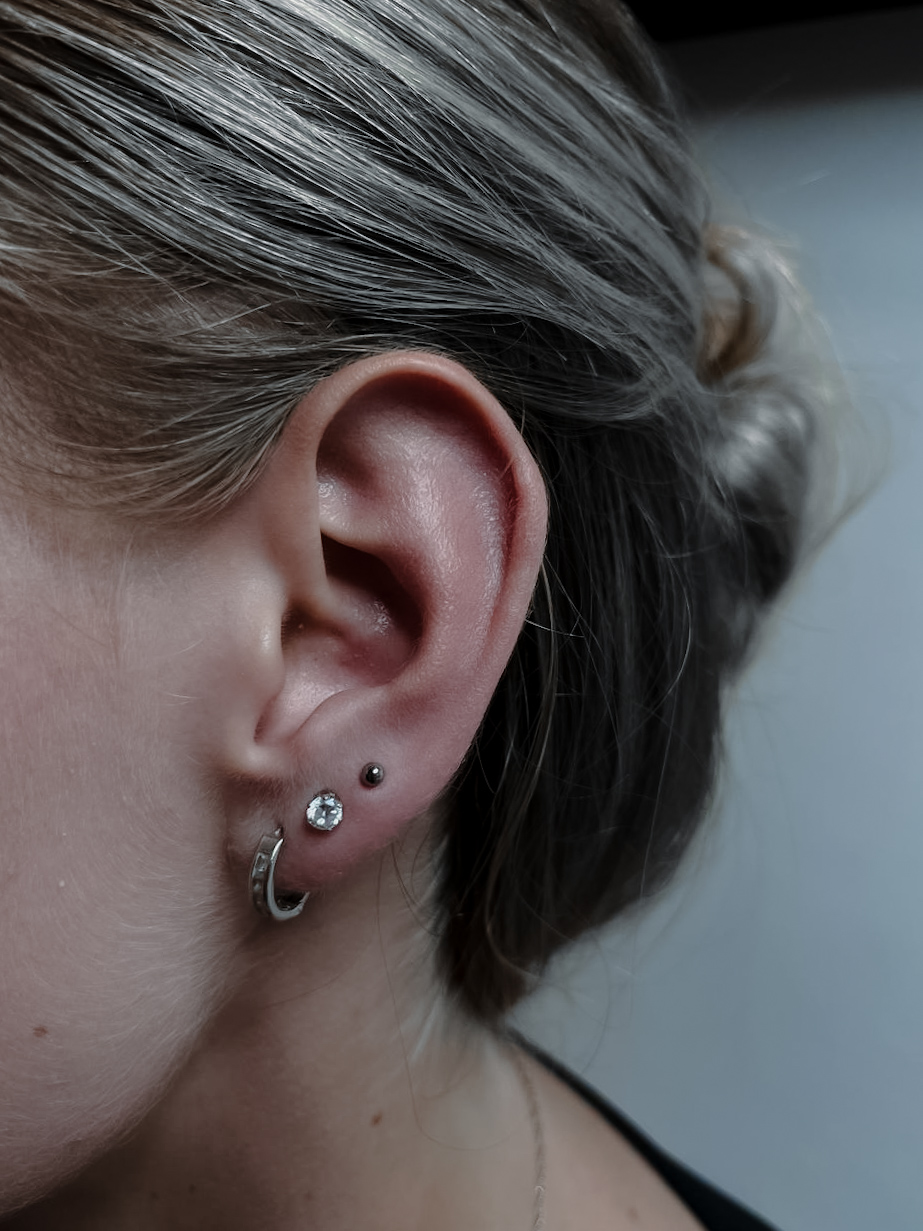 Vlastně jsem začala dělat piercing náhodou, sledovala jsem známou piercerku a zaujalo mě to, zkusila jsem to, takže mi to chvíli trvalo, nemám strach z krve, jehel, nebojím se člověku ublížit, neklepou se mi ruce, nemám strach, jsem spokojená. V budoucnu chci absolvovat kurz intimního piercingu, ale zatím mě to nezajímá. Kromě piercingu se věnuji tetování, chodím do posilovny, kreslím, mám moc ráda auta a motorky. Těším se na vás na sezení. Hi, my name is Jana, I am a master piercer.