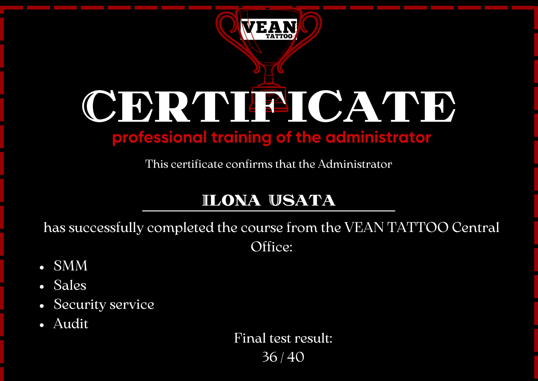 Ilona se stará o pohodlí, organizaci a příjemnou atmosféru. Pomůže vám vybrat vhodného tatéra podle vašich představ, vysvětlí, jak se připravit na sezení, poradí s následnou péčí a udělá vše pro to, aby byl váš pobyt ve studiu co nejpříjemnější, klidný a bez stresu.