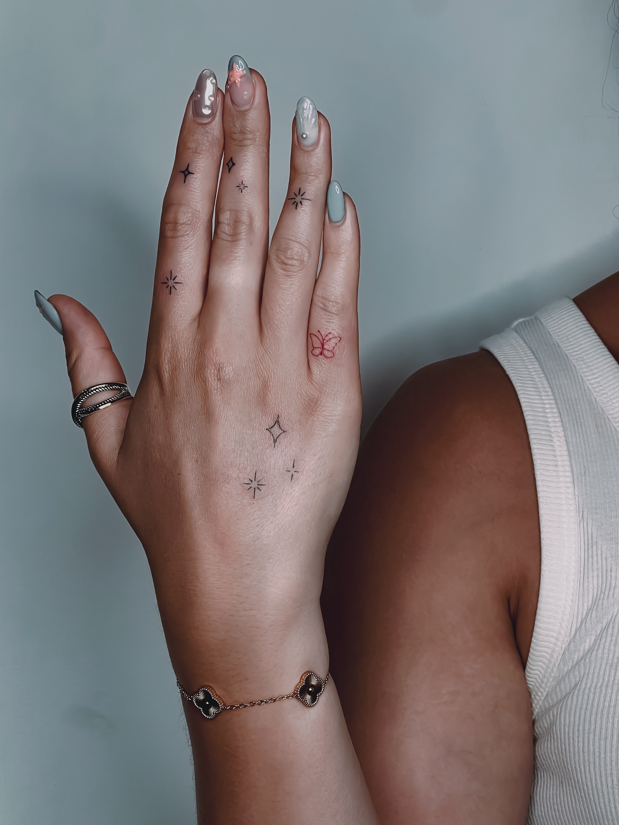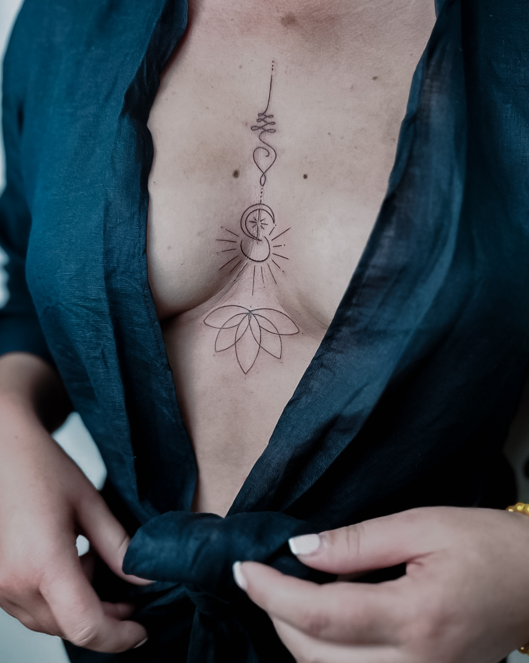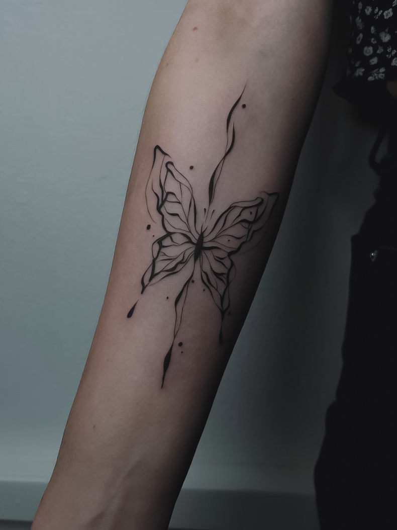 Specializuji se na minimalismus, jemné linie, grafiku, lettering, černobílé tetování a abstrakci, ale jsem vždy otevřená novým nápadům a experimentům. Pracuji s maximální pozorností k detailům – od tvorby návrhu až po samotné tetování.