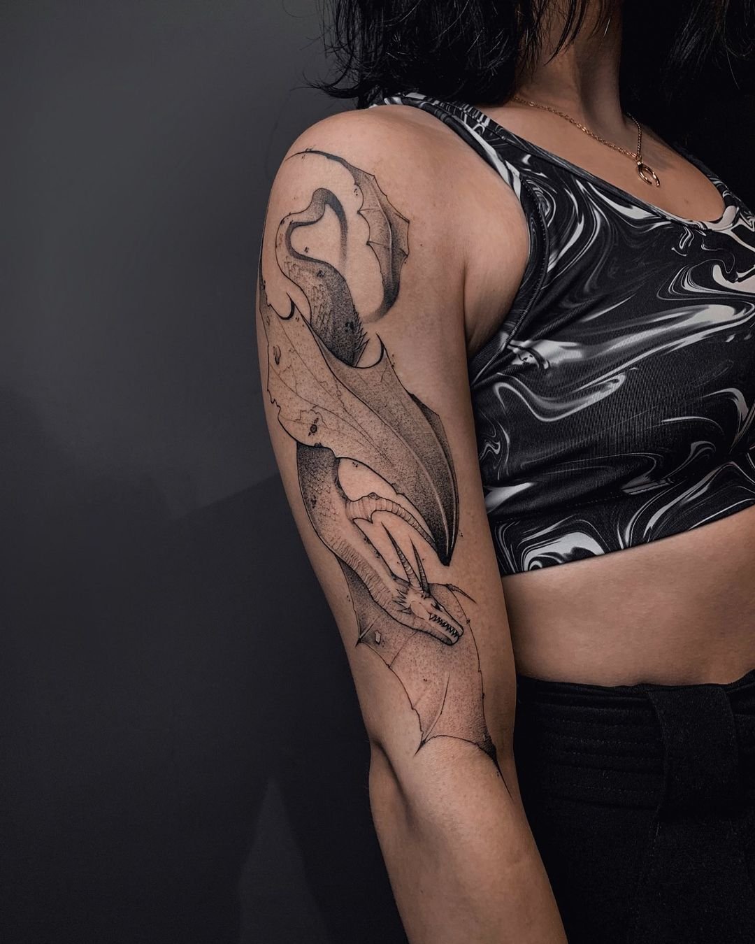 Umělci tetování tvrdí, že proces kreslení obrázku na horní část ruky je téměř bezbolestný. Hlavní je najít si "svého" tatéra, který bude schopen profesionálně a pečlivě realizovat skicu, která se vám líbila.