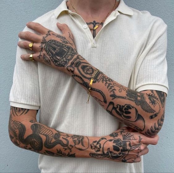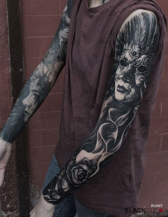 Vzhledem k tomu, že oblast paže a celé ruky je poměrně velká, tak i při volbě dvou nebo tří velkých tetování se budete stále potýkat s tím, že bude pokryta maximálně polovina rukávu.