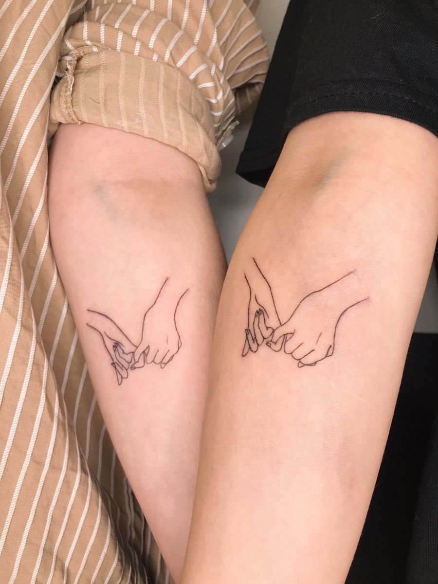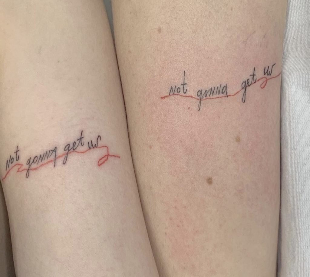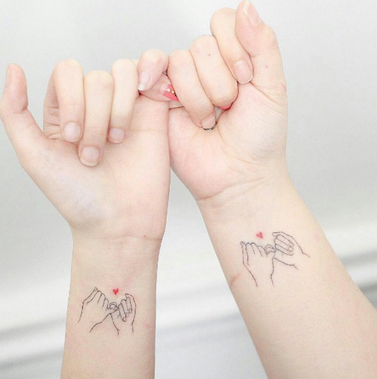 - Stejná tetování jsou aplikována na stejné části těla chlapa a dívky (na kotnících, na zápěstích);