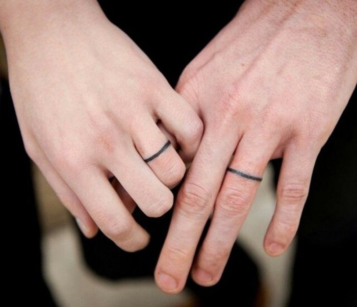 V druhém případě se tetování provádí na prstenících a nahrazuje tradiční snubní prsteny.
