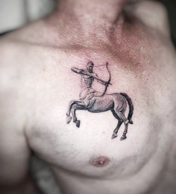 - Tetování znamení zvěrokruhu Střelce na hrudi: vhodné zejména pro muže, kteří se mohou pochlubit atletickou postavou.