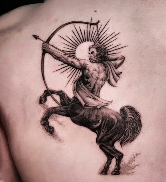 - Tetování znamení zvěrokruhu Střelce na zádech: pokud si chcete nechat udělat velké a agresivní tetování.