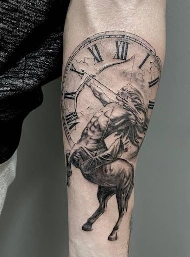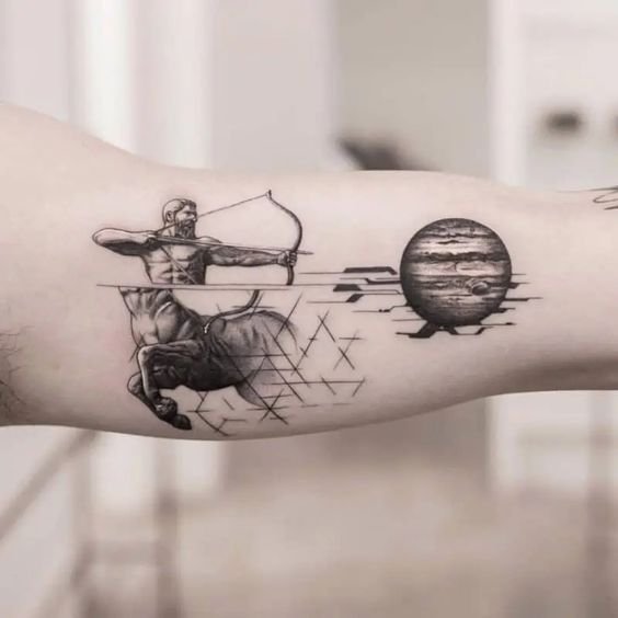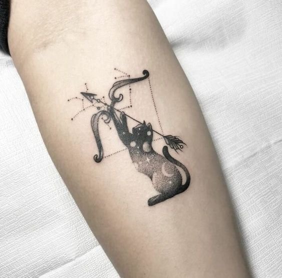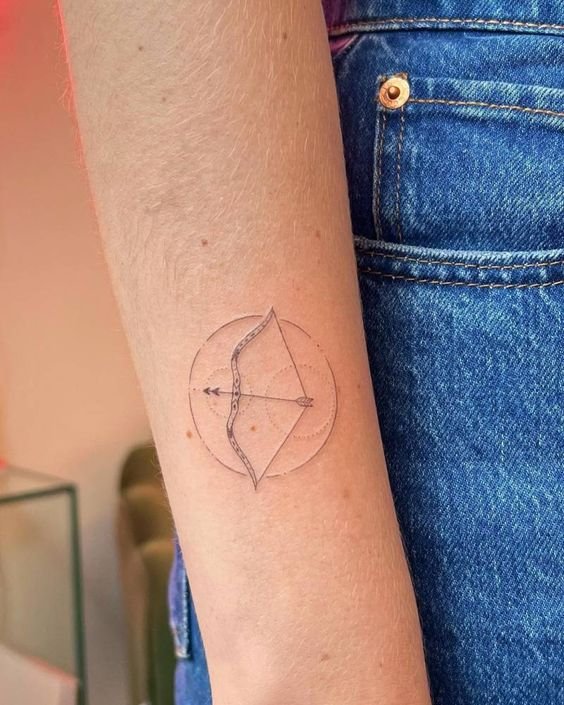- Tetování znamení zvěrokruhu Střelce na předloktí: vhodné umístění pro ty, kteří preferují skryté tetování kvůli své profesi.