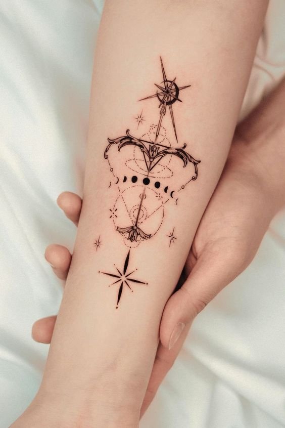 Ženám tetování souhvězdí Střelce pomůže zdůraznit jejich ženskost i romantiku a zároveň posílí charakterové vlastnosti, jako je odhodlání a rozhodnost.