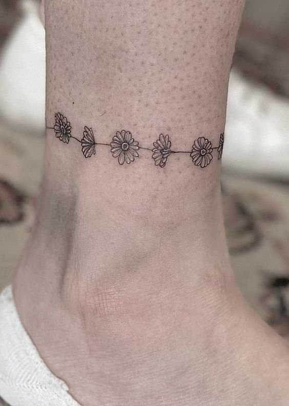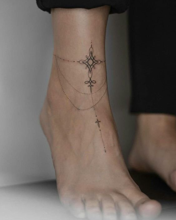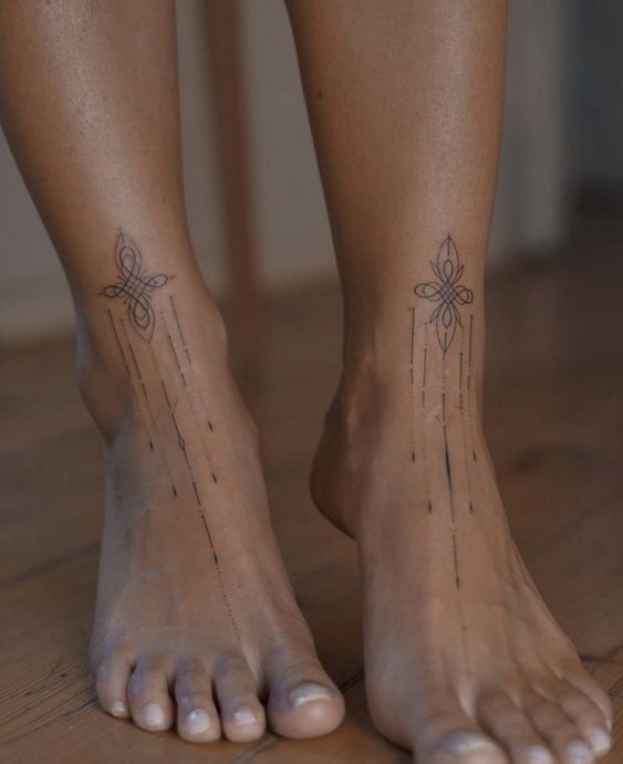 Nejharmoničtěji působí tetování, které se přizpůsobí přirozené stavbě dané části těla v tomto případě kostí na noze. Častou volbou je vytetovaný náramek na kotníku (existuje mnoho možností: řetízky, růžence, květinové vzory nebo kudrnaté větve, nápis obepínající nohu a další). Tento typ tetování vypadá velmi jemně a žensky, zdůrazňuje krásu nohou a dokonale doplňuje vzhled majitelky.