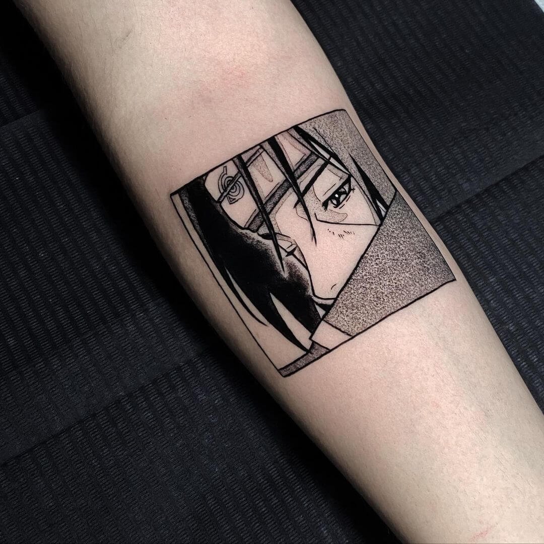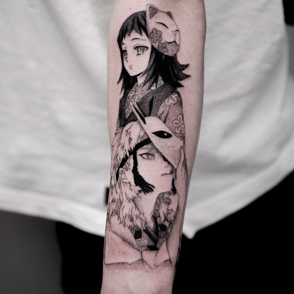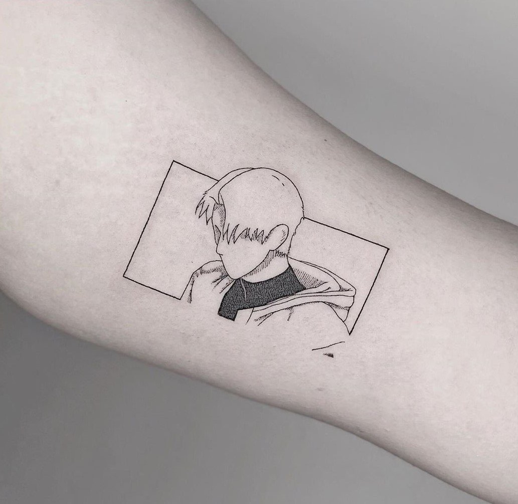 Anime tetovací skica přenesená na kůži bude dobrou volbou pro dívku i pro chlapa.