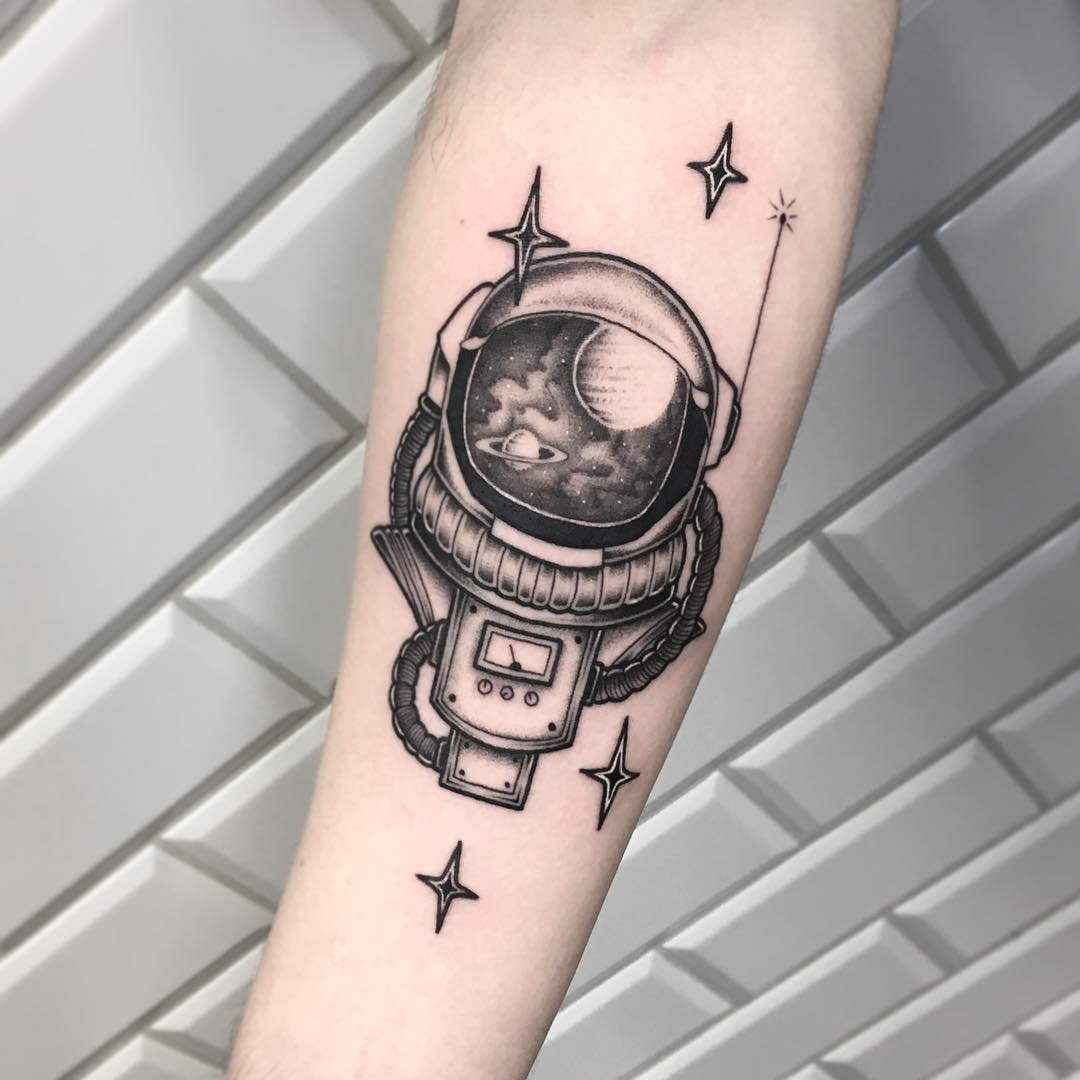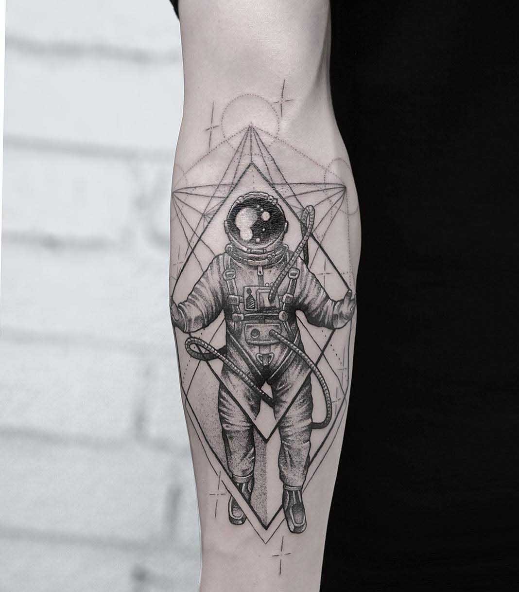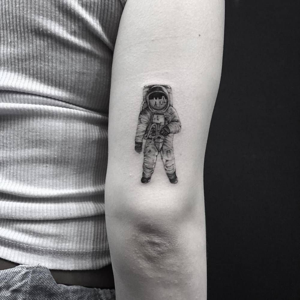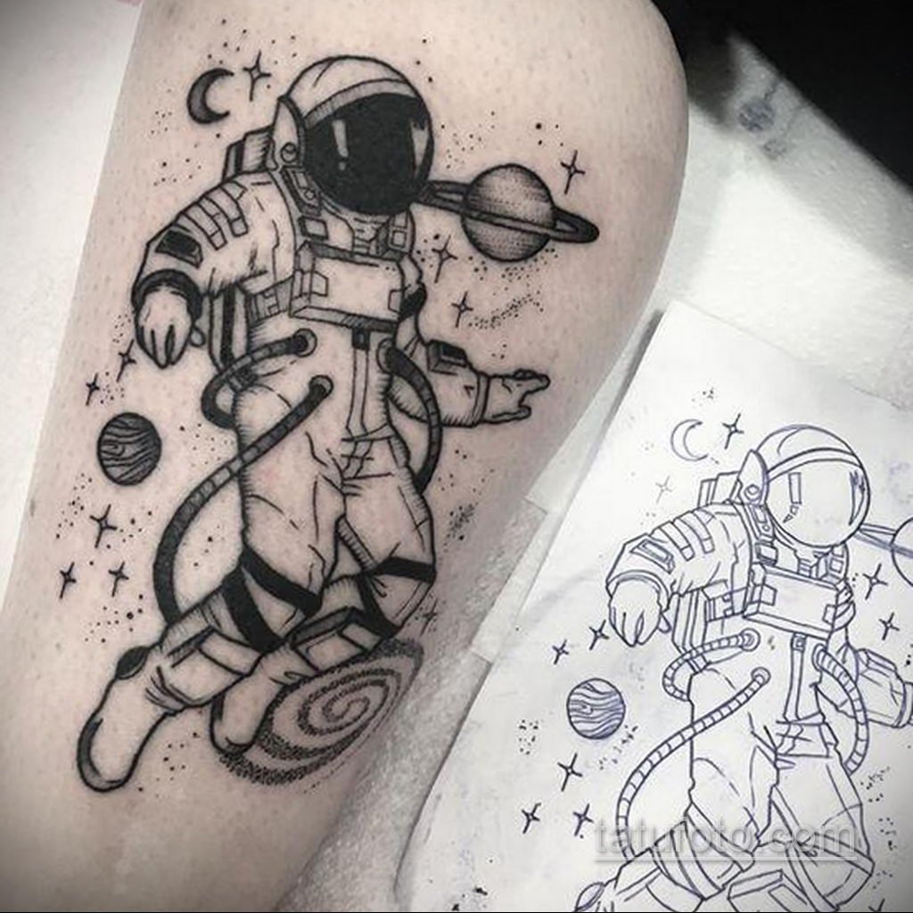 Jednou z atraktivních možností tetování je kresba v podobě astronauta nebo astronauta.