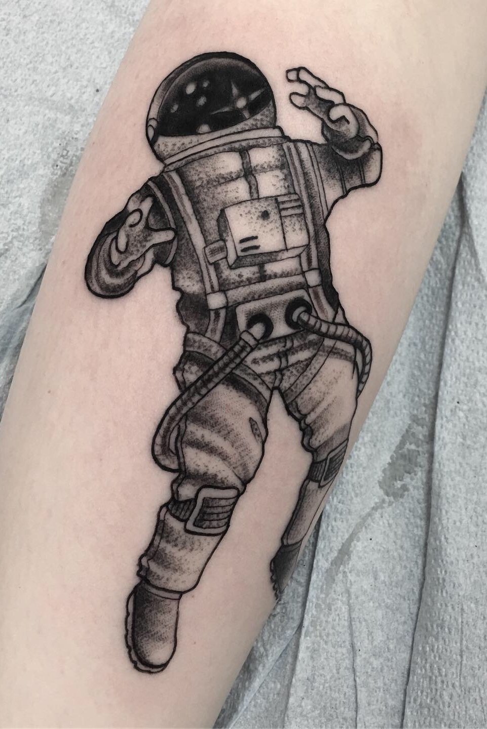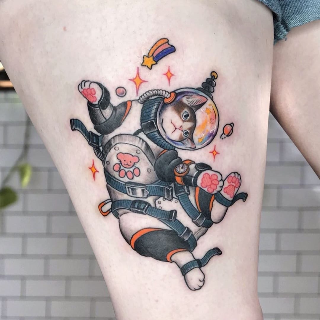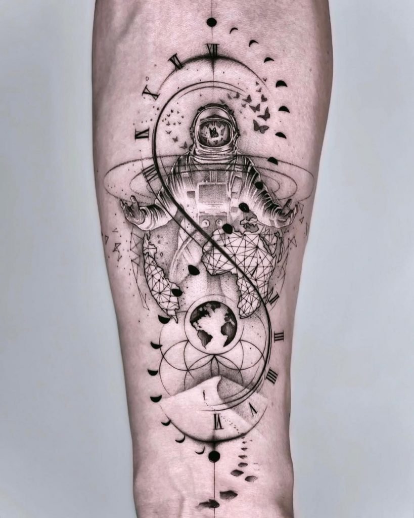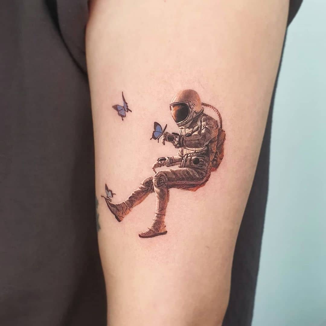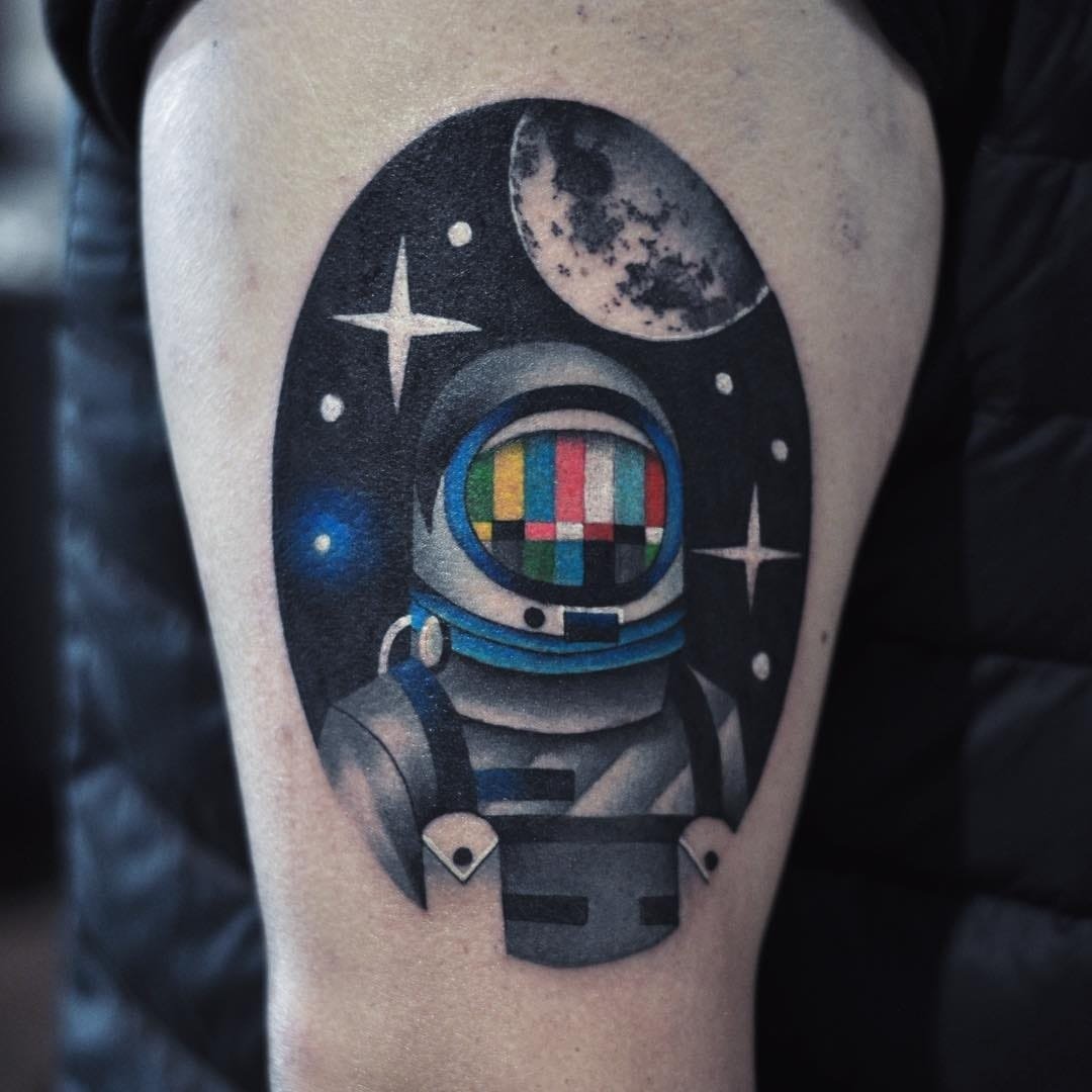 Jednou z atraktivních možností tetování je kresba v podobě astronauta nebo astronauta.