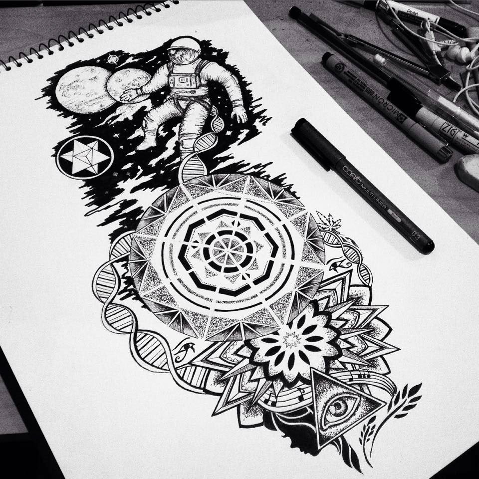 Astronaut tetování skica