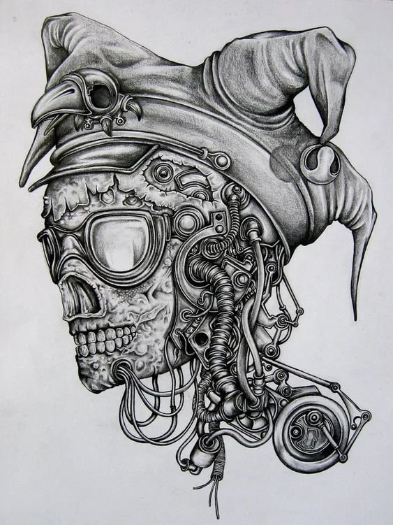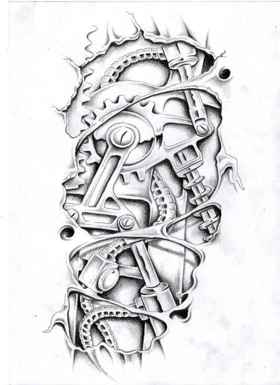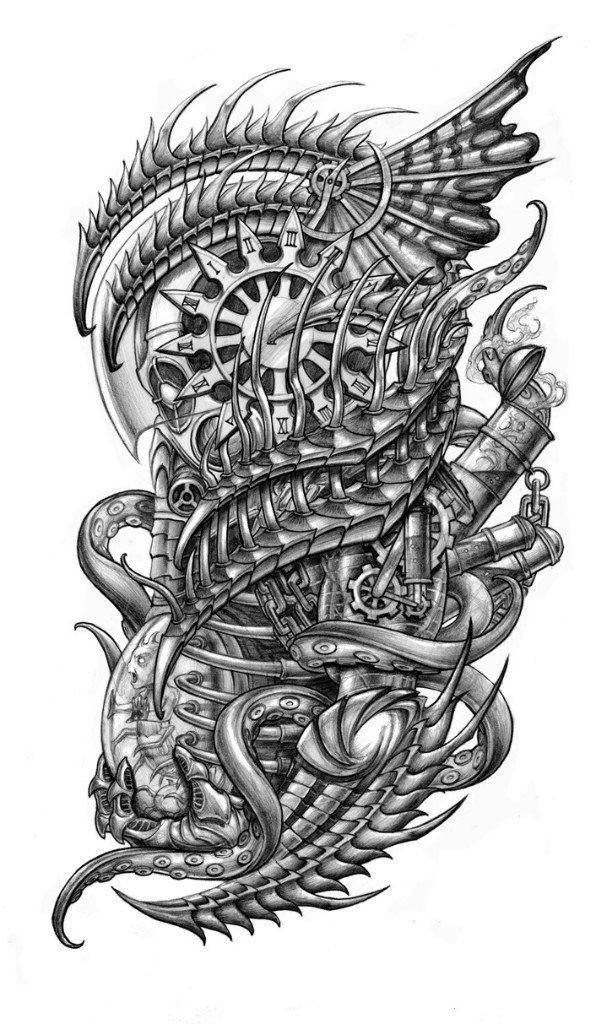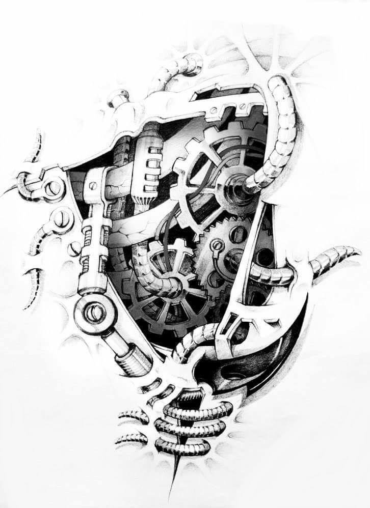Tetovací skici biomechaniky jsou nepřímými kopiemi děl Hanse Gigera. Jedná se o slavného švýcarského umělce, jeho díla zná každý. I když jste jeho obrazy naživo neviděli, nepochybně jste viděli film „Alien“, ve kterém to byl Hans Giger, kdo vytvořil podobu mechanických mimozemšťanů.