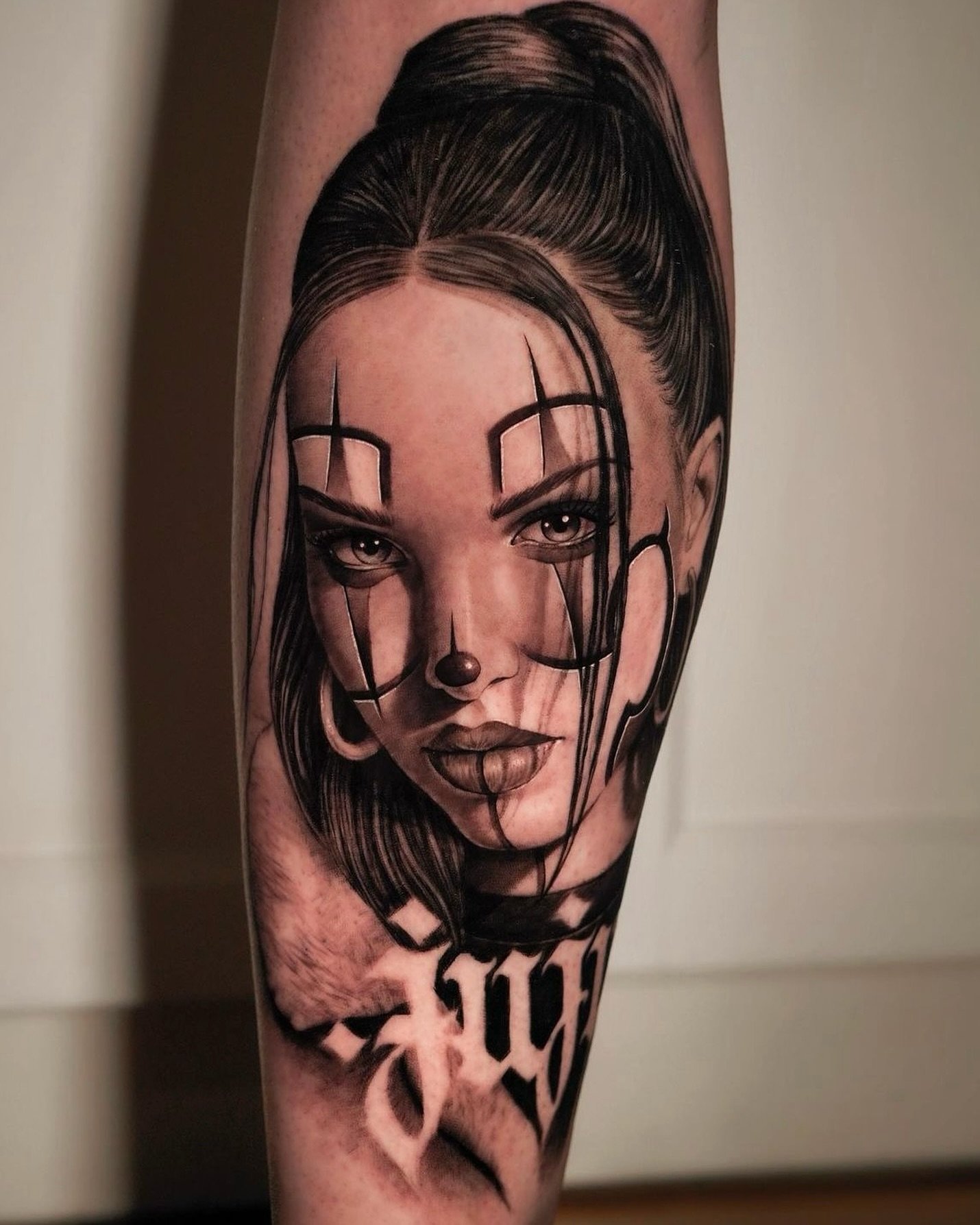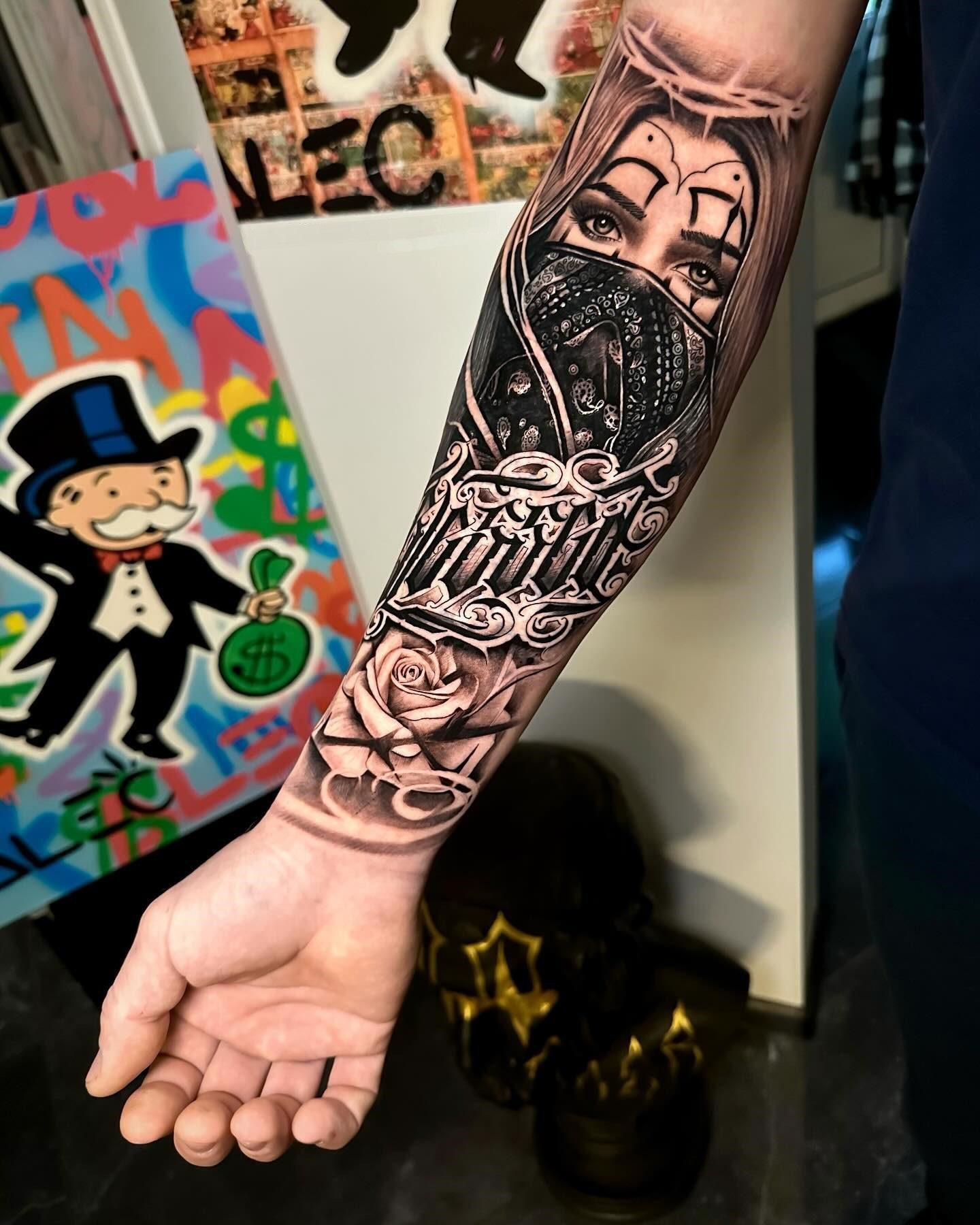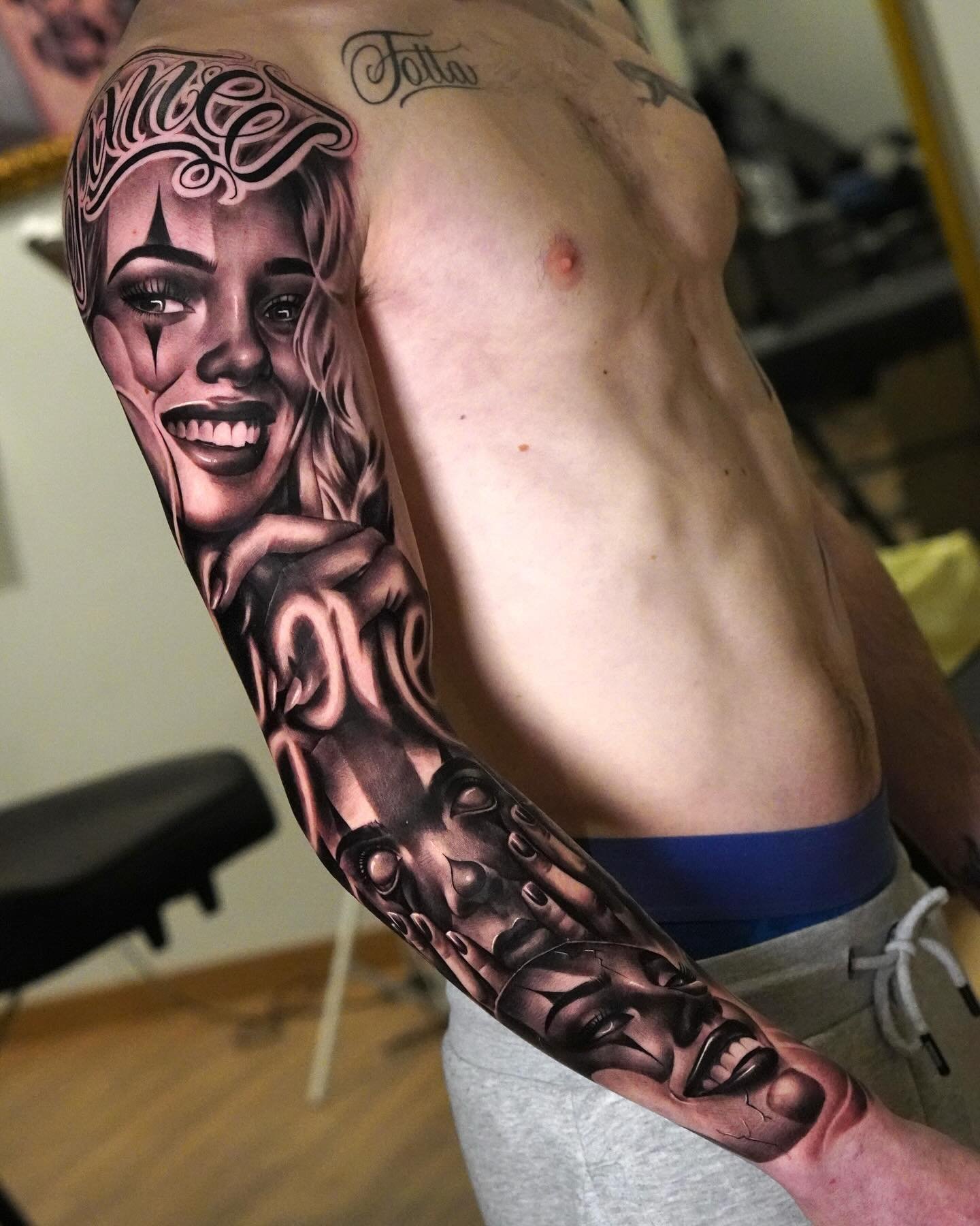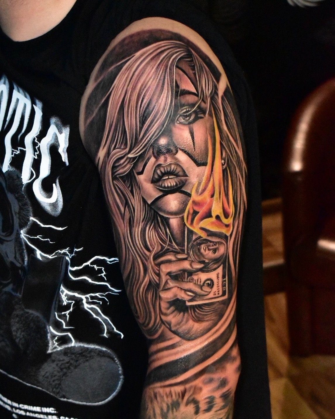 Tetování chicano efektně vypadají na rozsáhlých částech těla, jako je záda, hrudník, horní část nohy, předloktí, břicho.