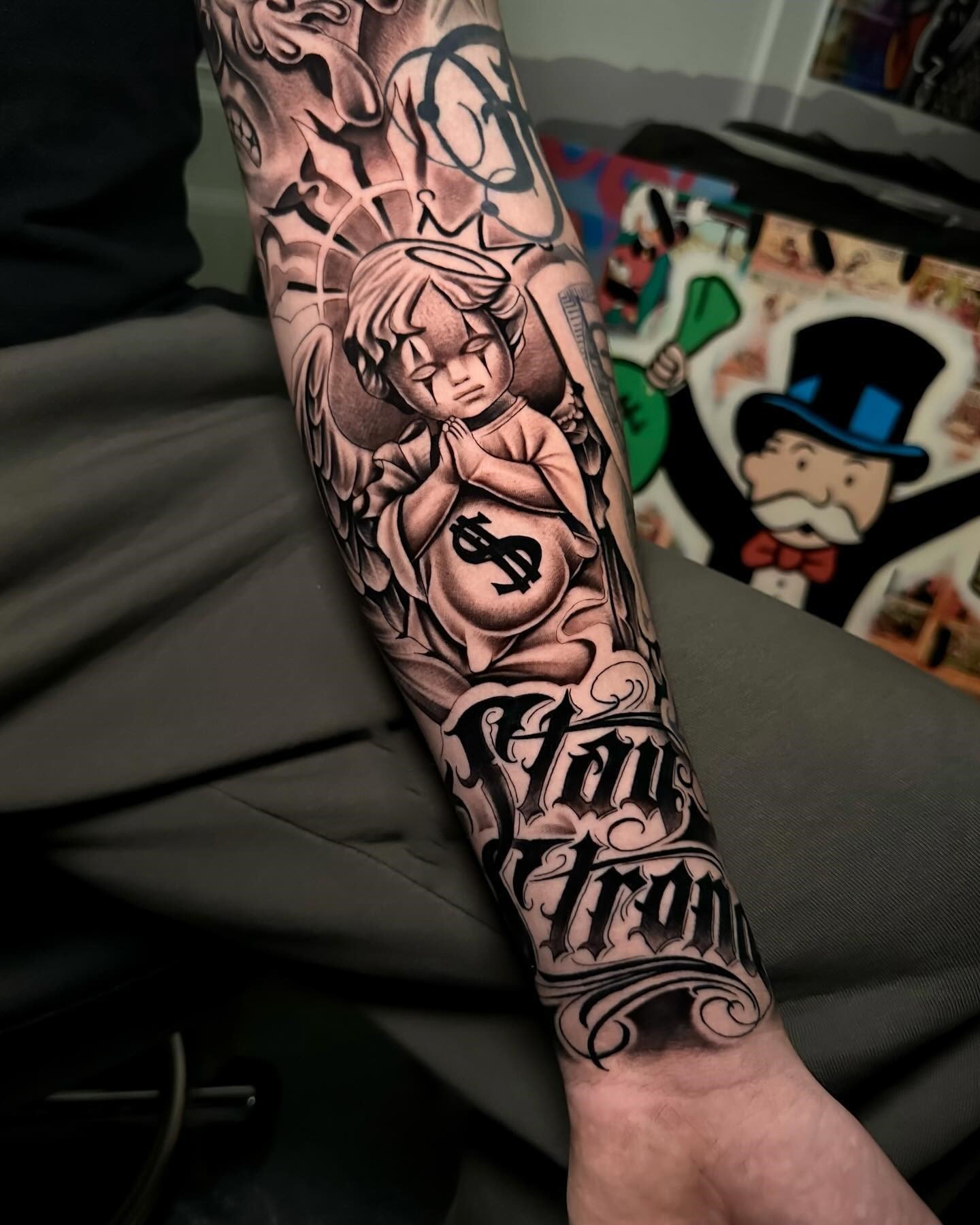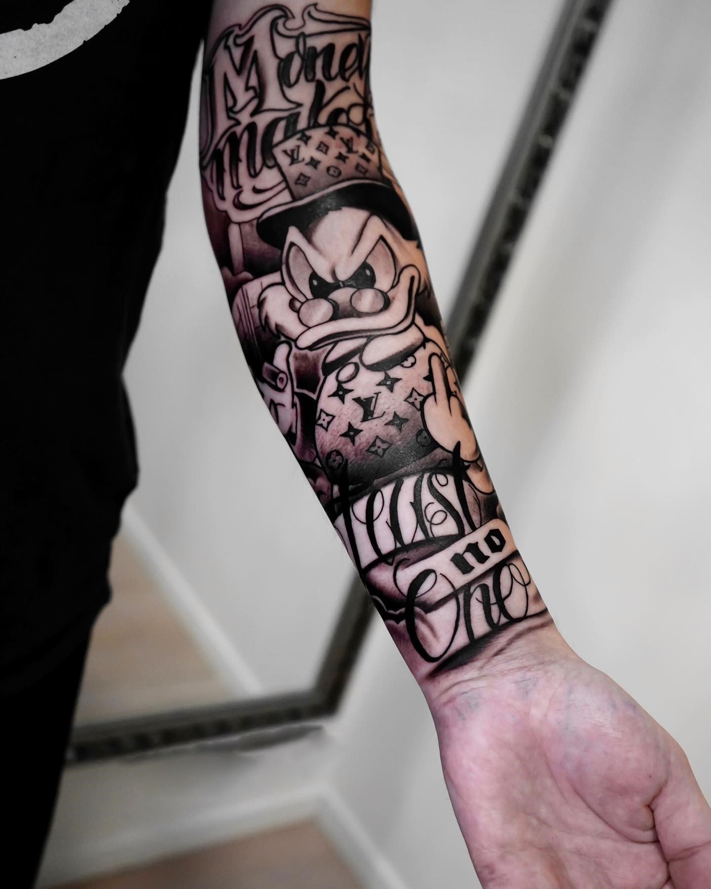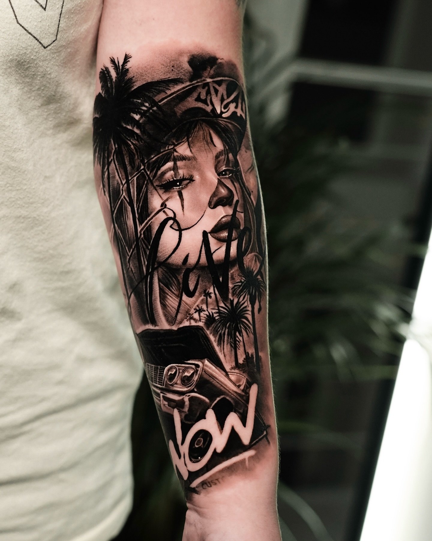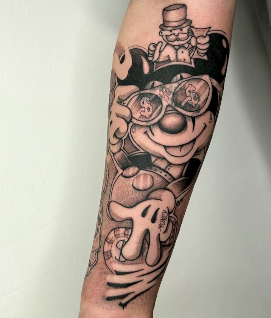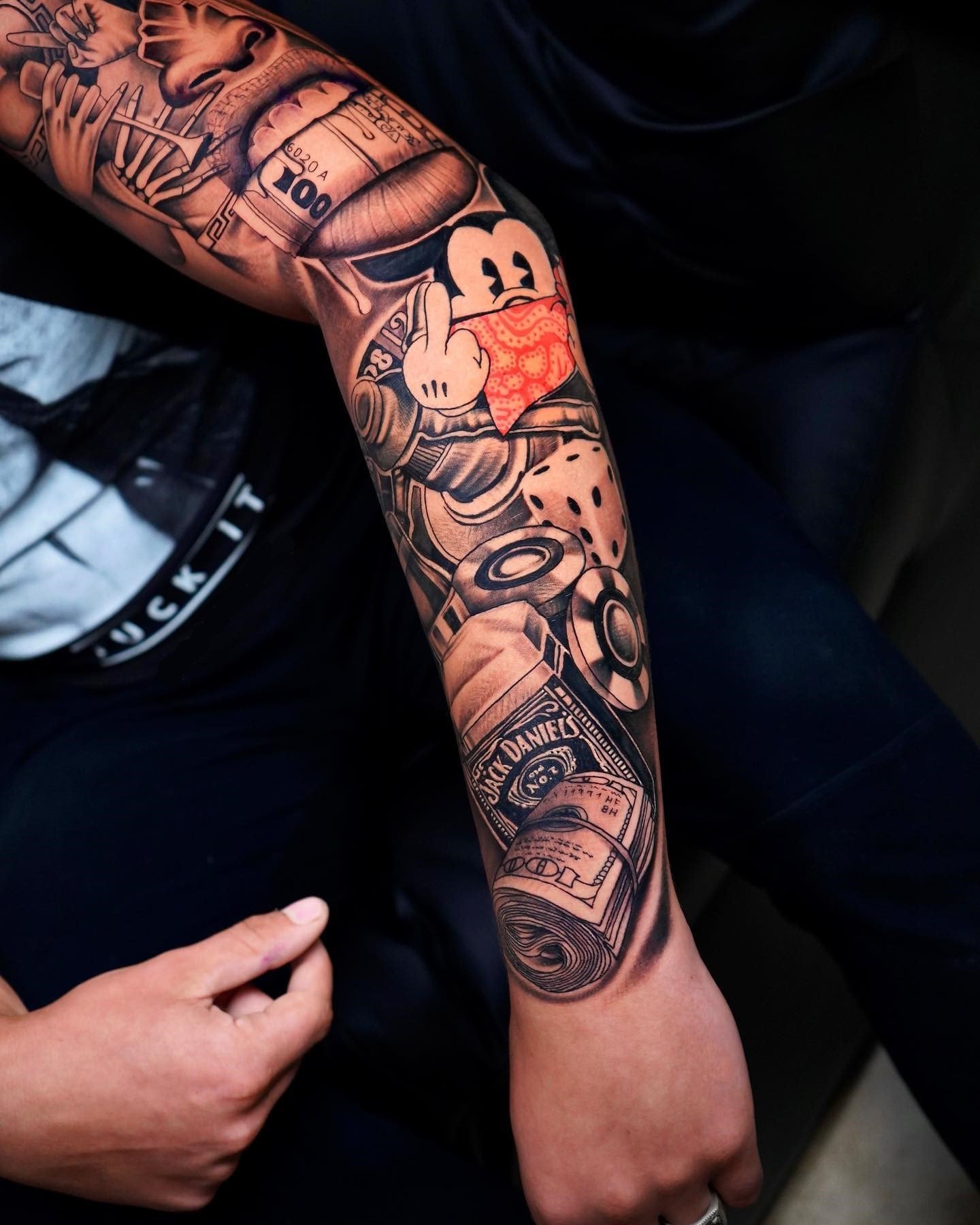 Tetování chicano efektně vypadají na rozsáhlých částech těla, jako je záda, hrudník, horní část nohy, předloktí, břicho.