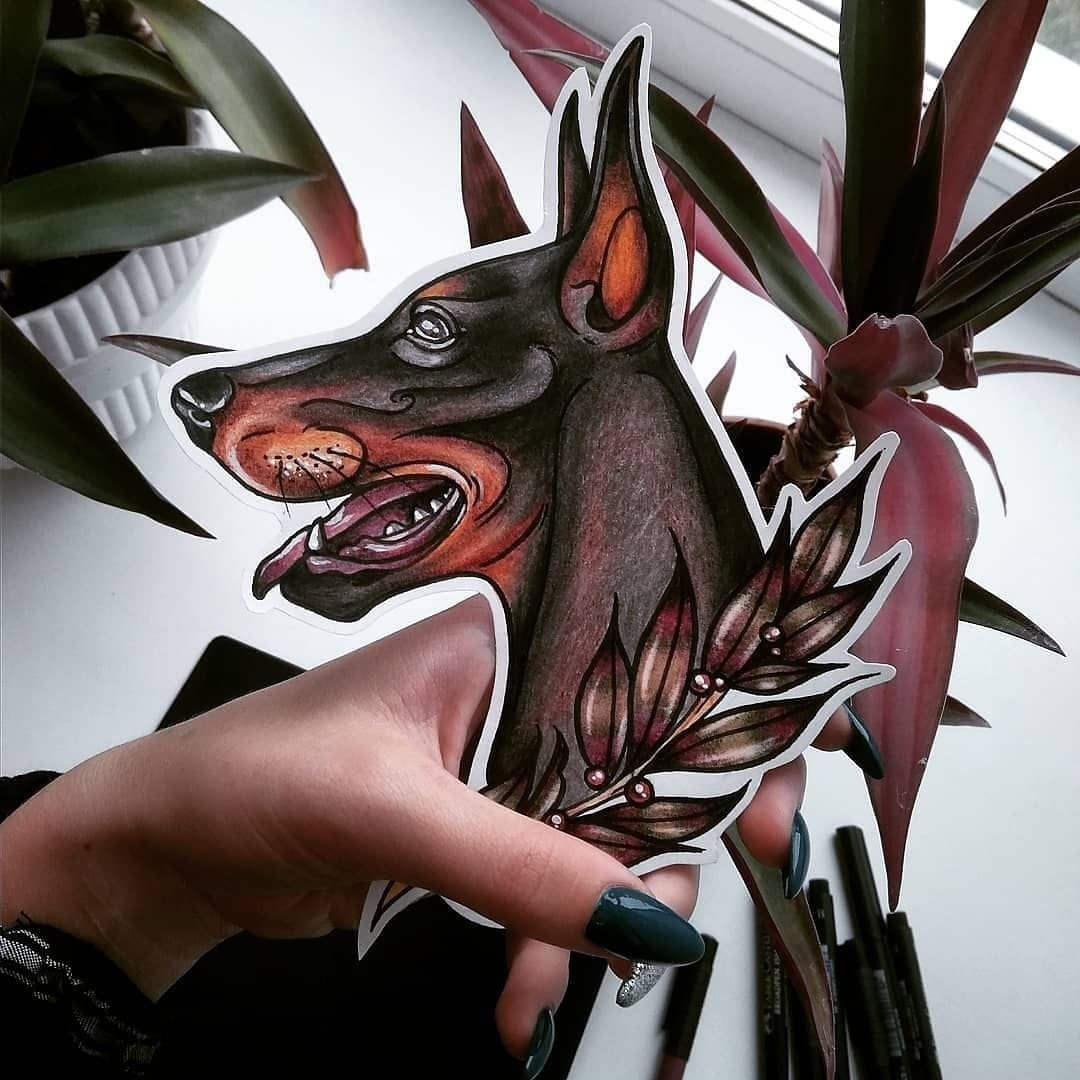 Na základě toho tetování dobrmana označuje charakterové rysy majitele tetování.