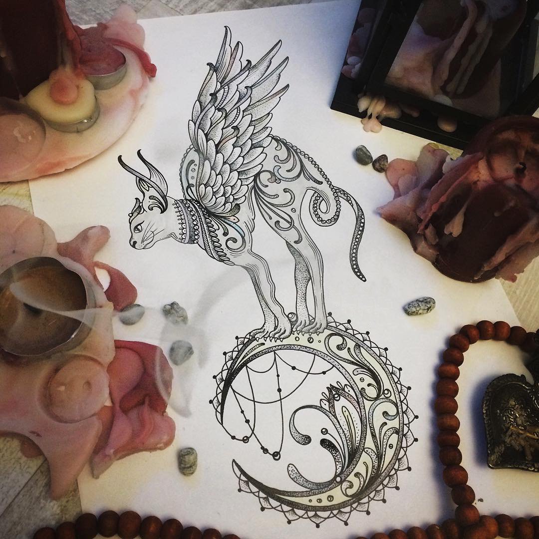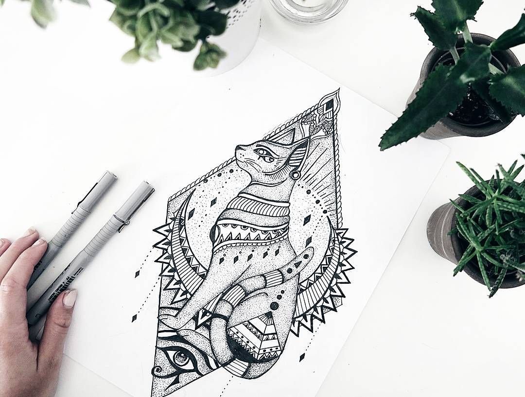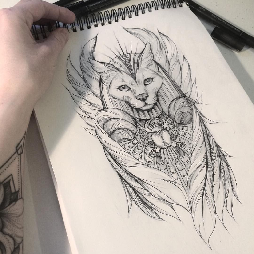 Samotná bohyně je také ochránkyní světa živých. Její obraz zdobil pyramidy a krypty. Kočka může být prezentována z různých úhlů, ale nejčastěji je to zvíře stojící na zadních nebo sedící, zakrývající se ocasem. Tetování psa je opakem toho druhého. Pes je symbolem boha Anubise, který byl negativním božstvem v panteonu této země.