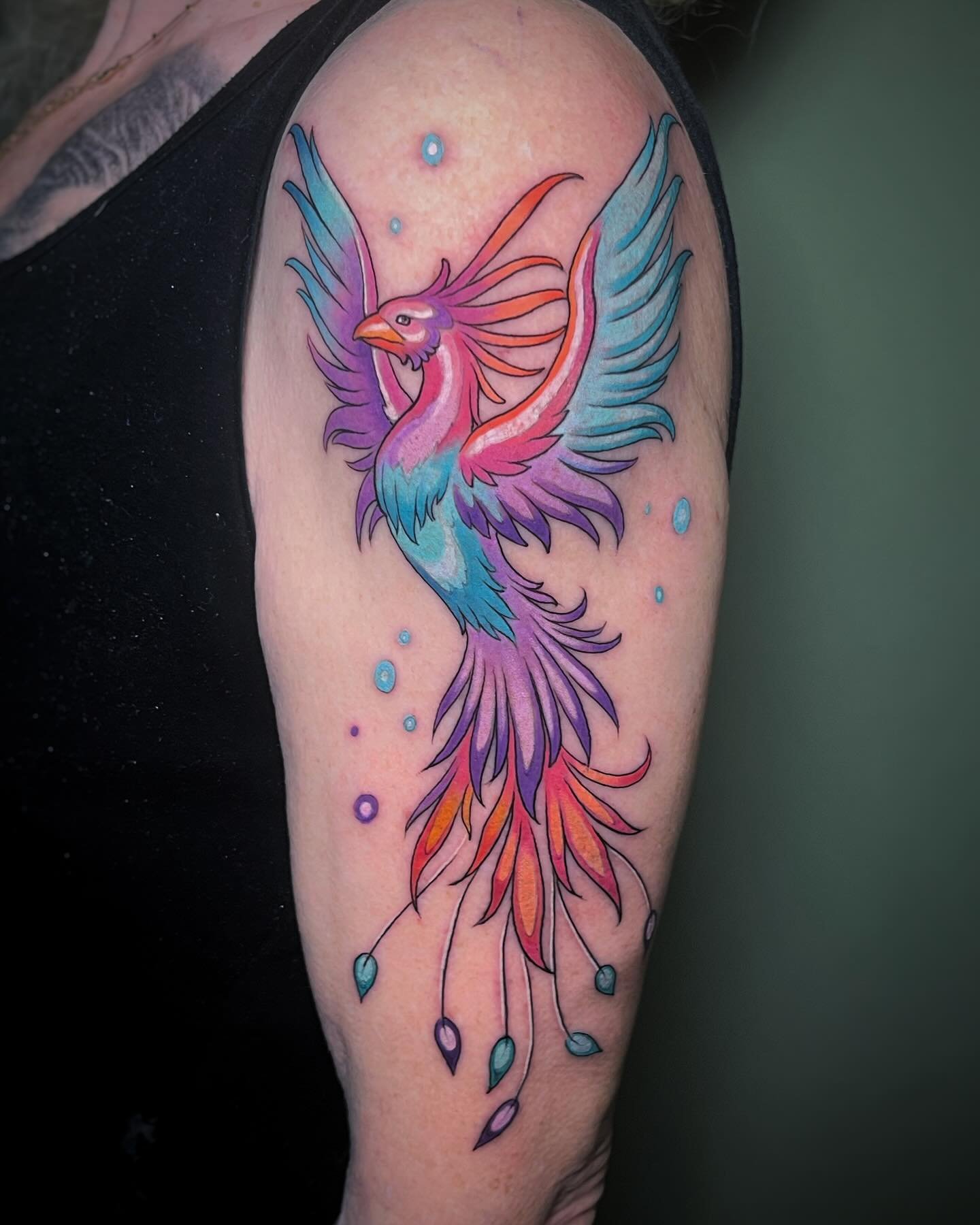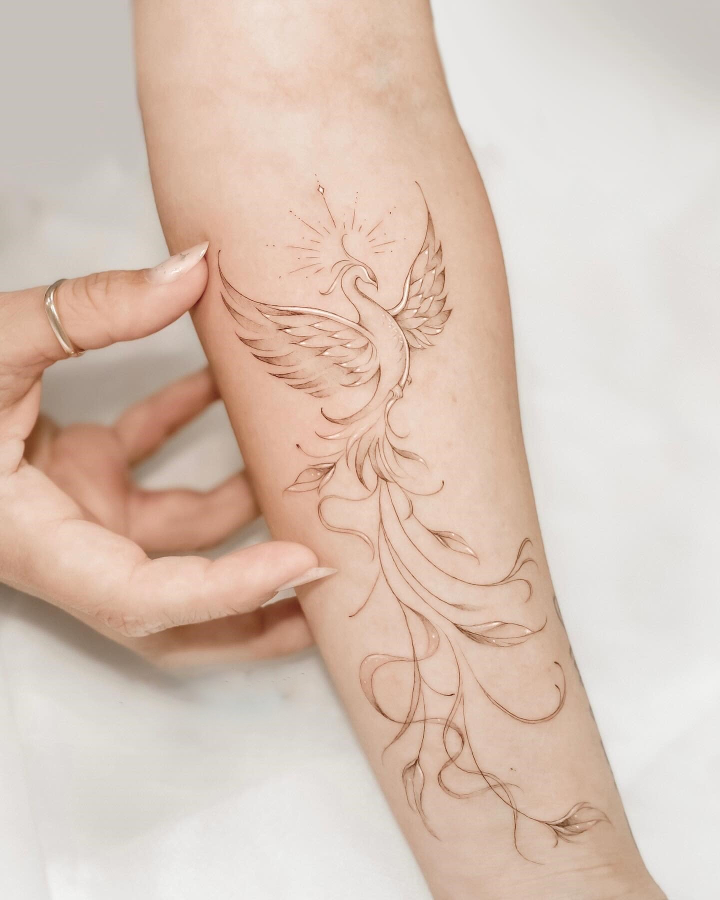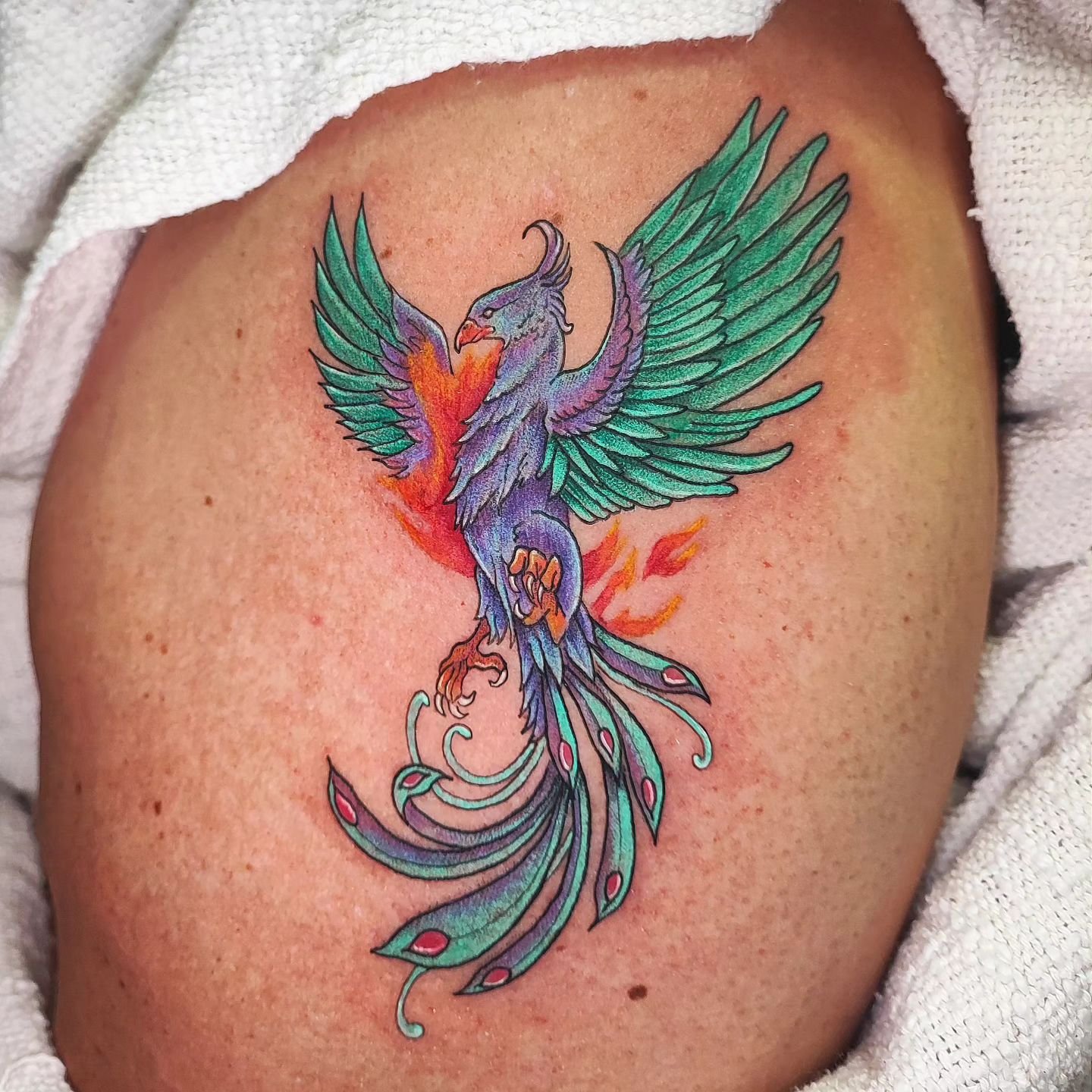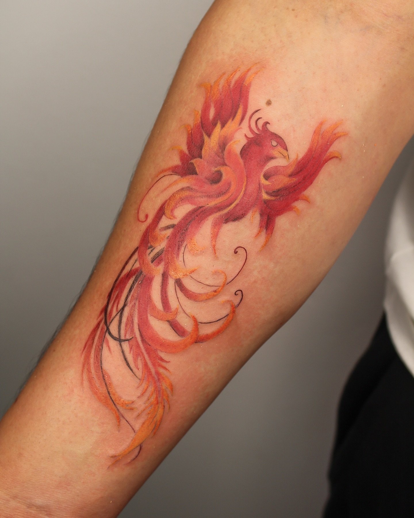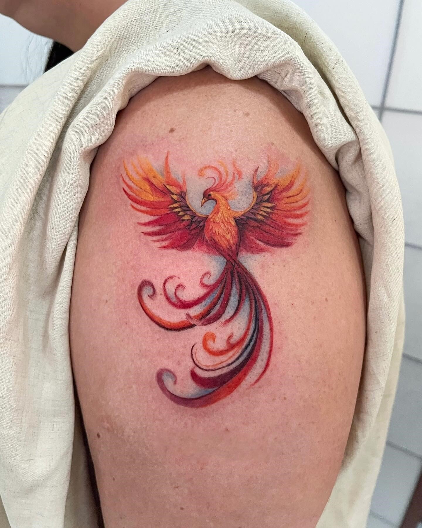 Jak lidé poznávají tohoto úžasného ptáka, stále více se jím nadchne, snaží se dozvědět o fénixovi co nejvíce. Z všech poskytnutých významů lze shrnout, že fénix nese výhradně pozitivní významy. Obrázek fénixa dává majiteli jakousi motivaci, připomínající, že lze přežít jakoukoli obtíž, za jakýchkoli okolností je třeba nalézt víru v lepší a nebát se žít dál. Tetování s obrázkem fénixa se obvykle provádí v jasných barevných barvách, s převahou červené, oranžové a žluté barvy. Černobílý obrázek se setkává poměrně zřídka. Místo pro nanesení obrazu si můžete vybrat jakékoli, ale je lepší použít rozsáhlejší části těla, tak obrázek bude mnohem efektivnější.