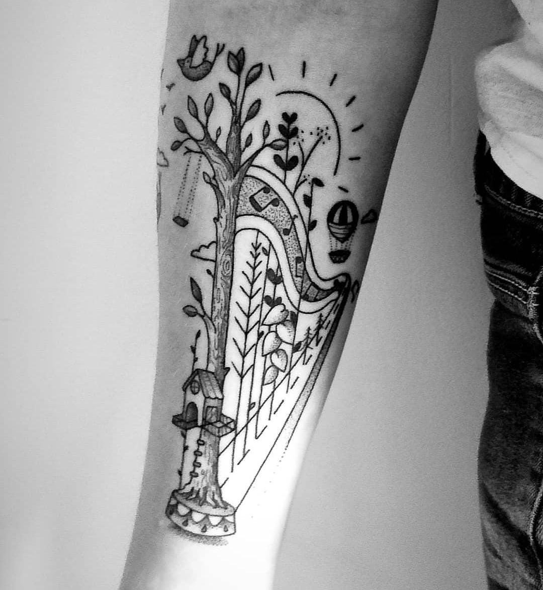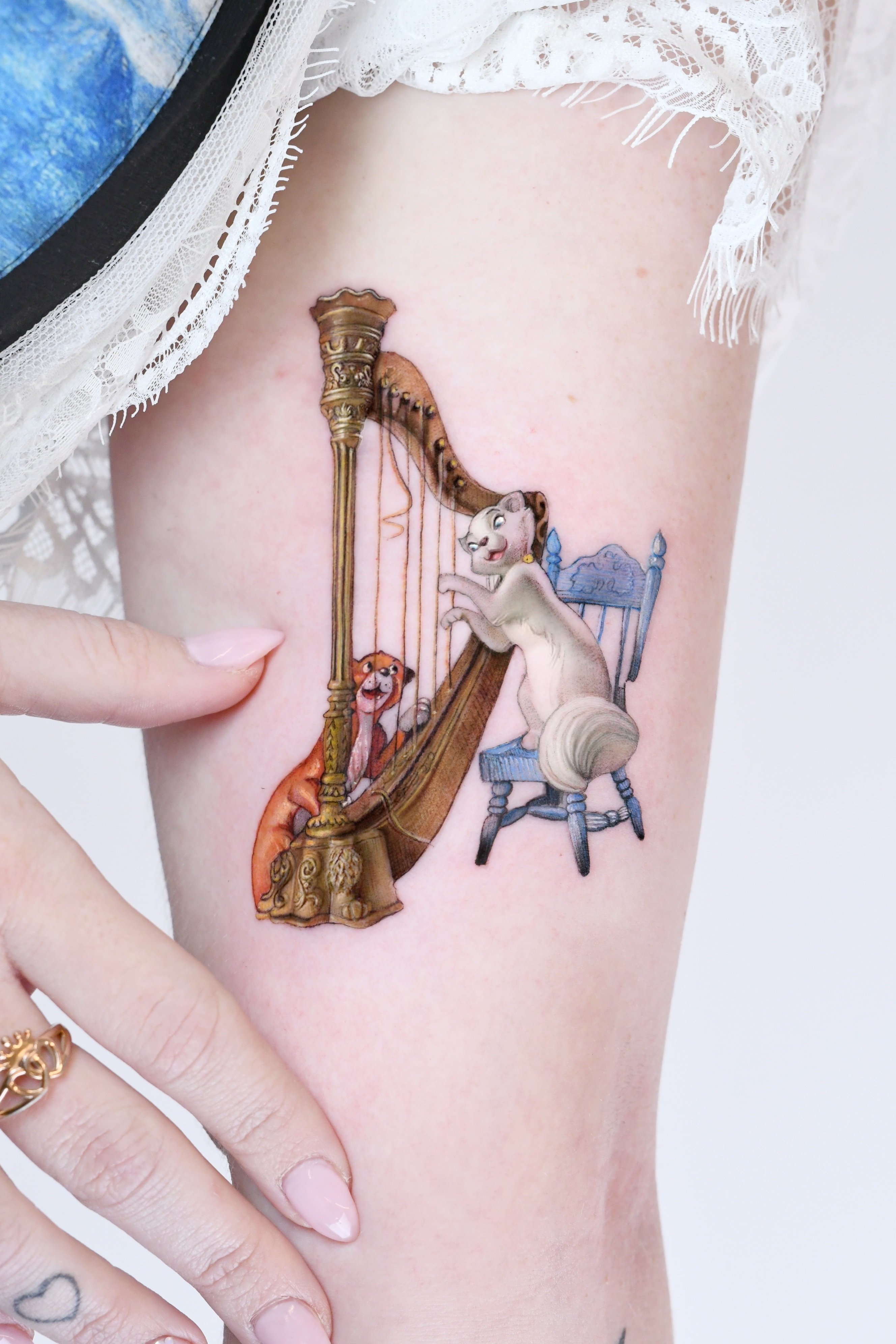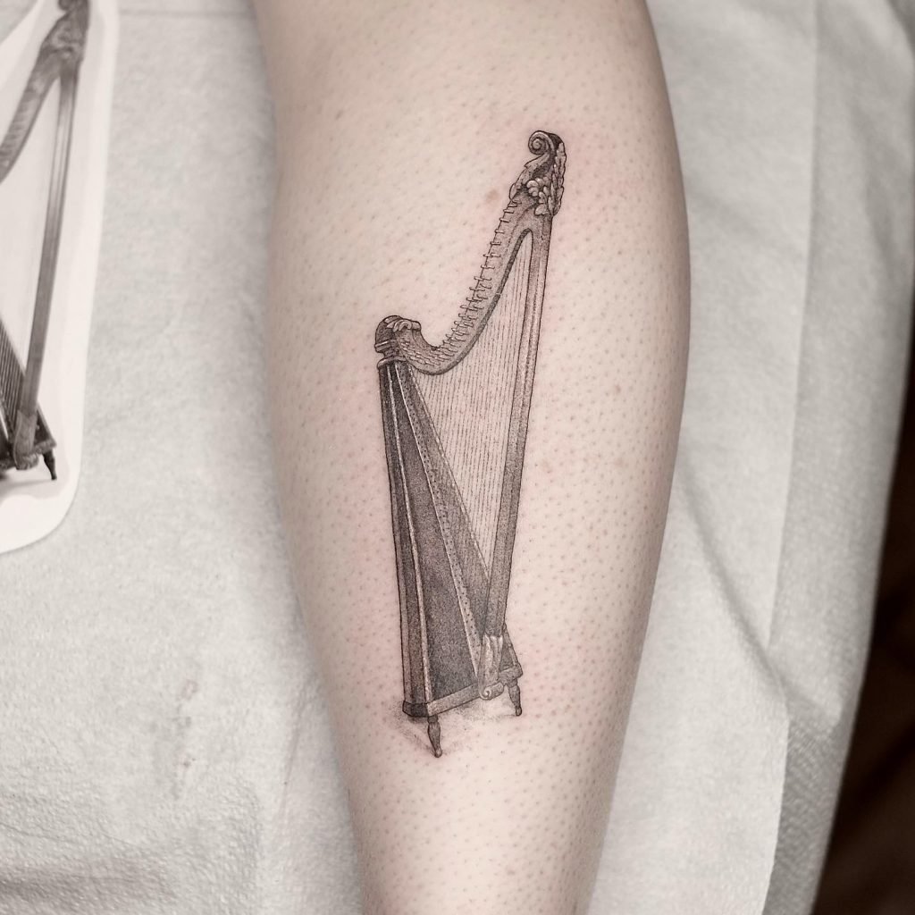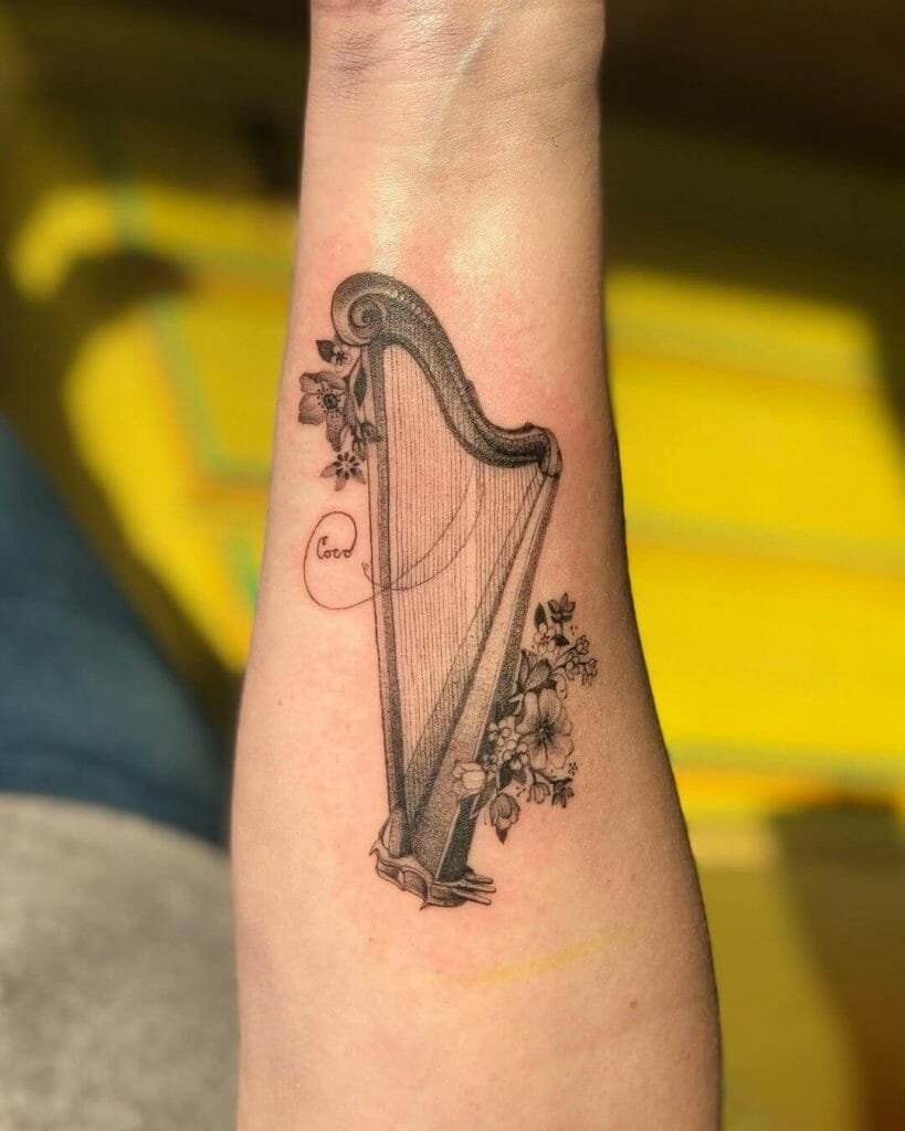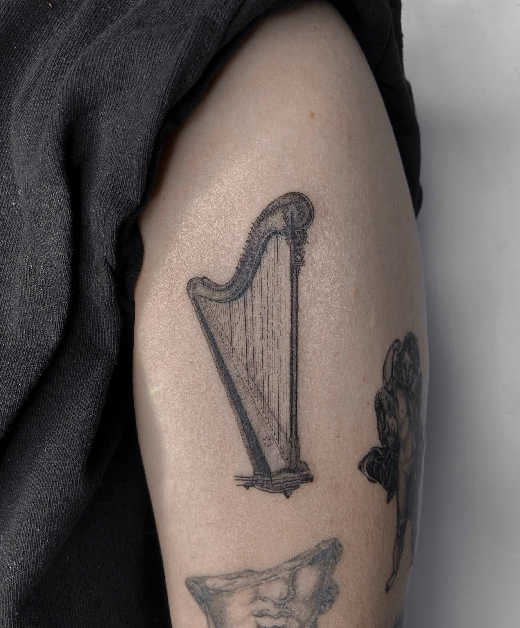Tetování na harfu vás může zajímat, protože samotný obraz je sofistikovaný a zajímavý.