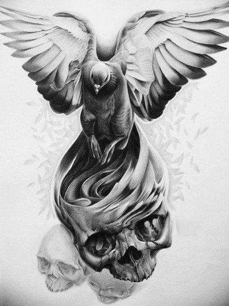 Tady to tetování může být zobrazeno na jakékoli části těla, v každém případě bude obraz vypadat krásně. Holub bude vypadat originálně a krásně v každém provedení, i když to bude realismus, blackwork nebo trash polka. Holubice se hodí k různým doplňkům: květiny, stuhy, nápisy a mnoho dalšího. Obraz holubice může být proveden v jakýchkoli barvach nebo být jen černobilí. Vy sobě sámi můžete vytvořit náčrt, který se vám bude líbít, a dát mu svůj zvláštní význam.