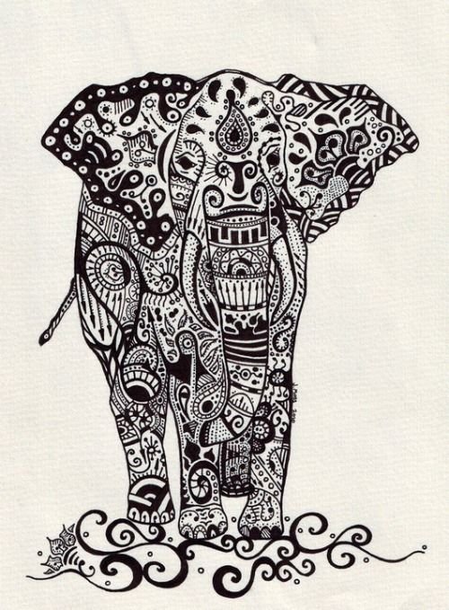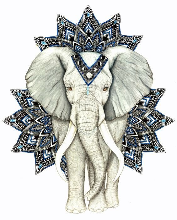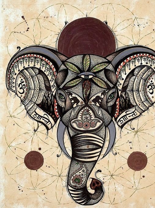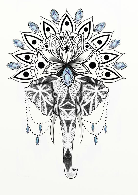 Chovají se jako hory samotných bohů. Indra - král všech bohů a vládce nebeského království, je přitahován jízdou na slonovi. Nejběžnější implementací indického slona v oblasti tetování je tvář božstva jménem Ganesha. Zobrazeno s velkým lidským tělem, sloní hlavou a čtyřmi nebo více pažemi. Na obrázcích může mít Ganéša jeden až šestnáct párů rukou. Ale v tetování je božstvo zobrazeno s přesně dvěma páry rukou, které nese znamení: emocionální blaženost, prosperitu, odmítnutí reinkarnace a plnění povinností.
