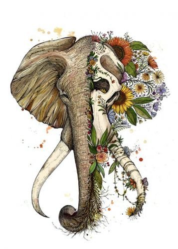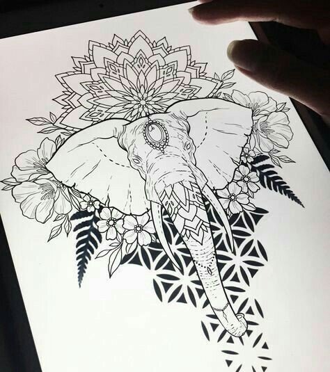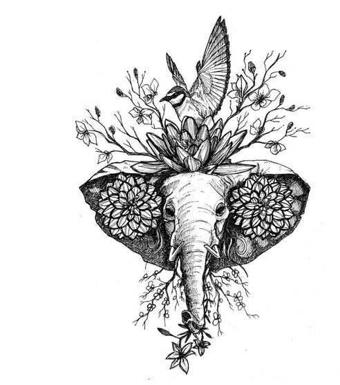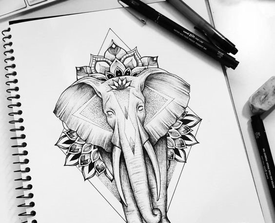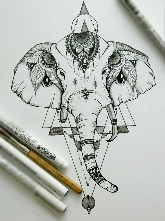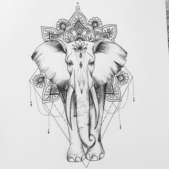 - Tetovací skica indického slona, konkrétně božstva Ganéši, je nabitá pozitivní energií, která příznivě ovlivňuje lidský život. Tento obraz je ztělesněním moudrosti, prosperity, síly a stálosti. Navíc přispívá k rozvoji lidské kreativity.