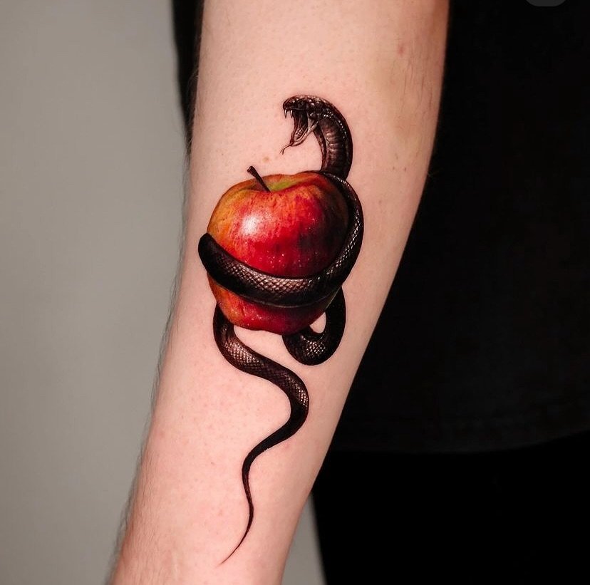 Avšak tak jednoduché a běžné ovoce je poměrně mnohoznačným symbolem v průmyslu uměleckého tetování. S čím to souvisí? Začněme asi od samého začátku, tedy od rajské zahrady, ve které had-svůdce přiměl Evu ochutnat zakázané ovoce.