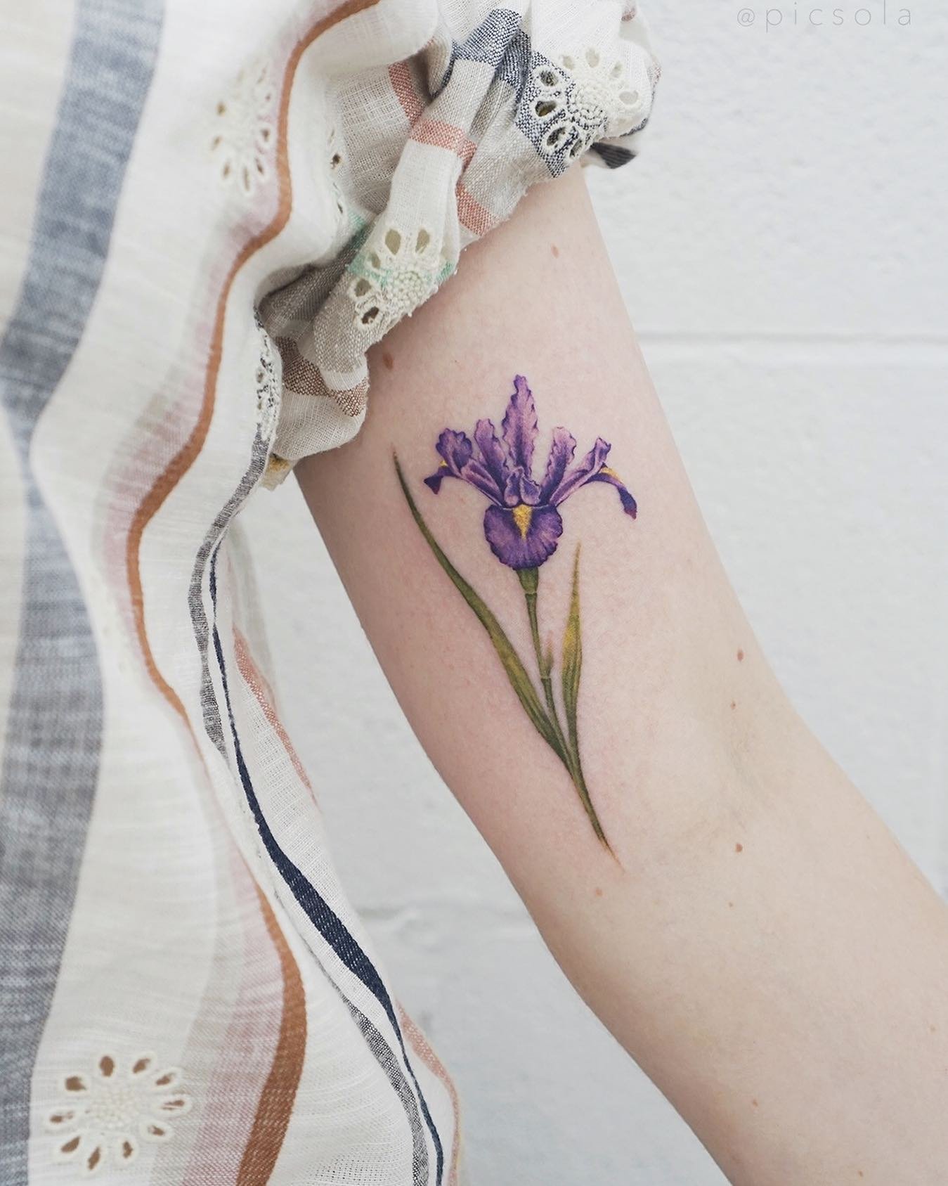 - Kosatec. Podle japonských věr, kosatec je symbolem odvahy, moudrosti a statečnosti. V Japonsku existuje hieroglyf, který značí kosatec, je symbolem velkého válečného ducha. Tetování s kosatcem je považováno za mužské, ale dívky také často volí zobrazení tohoto květu pro tetování.