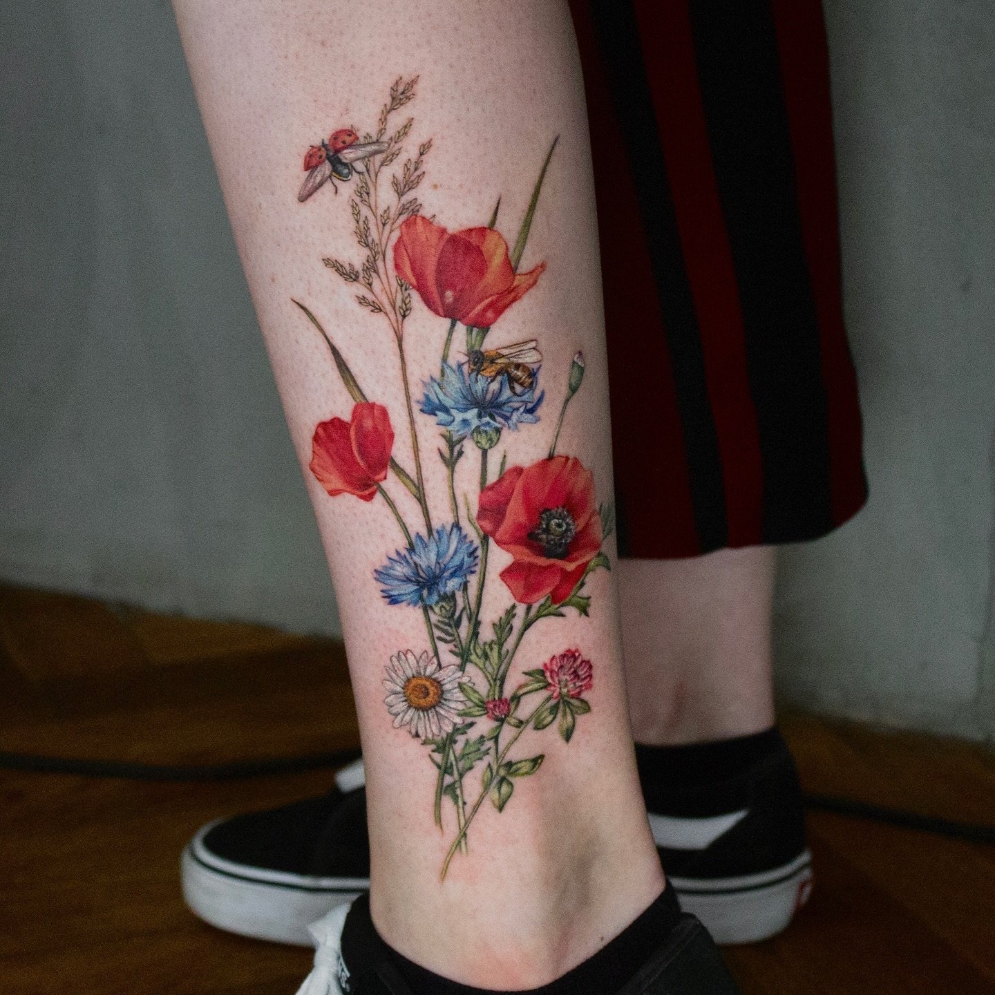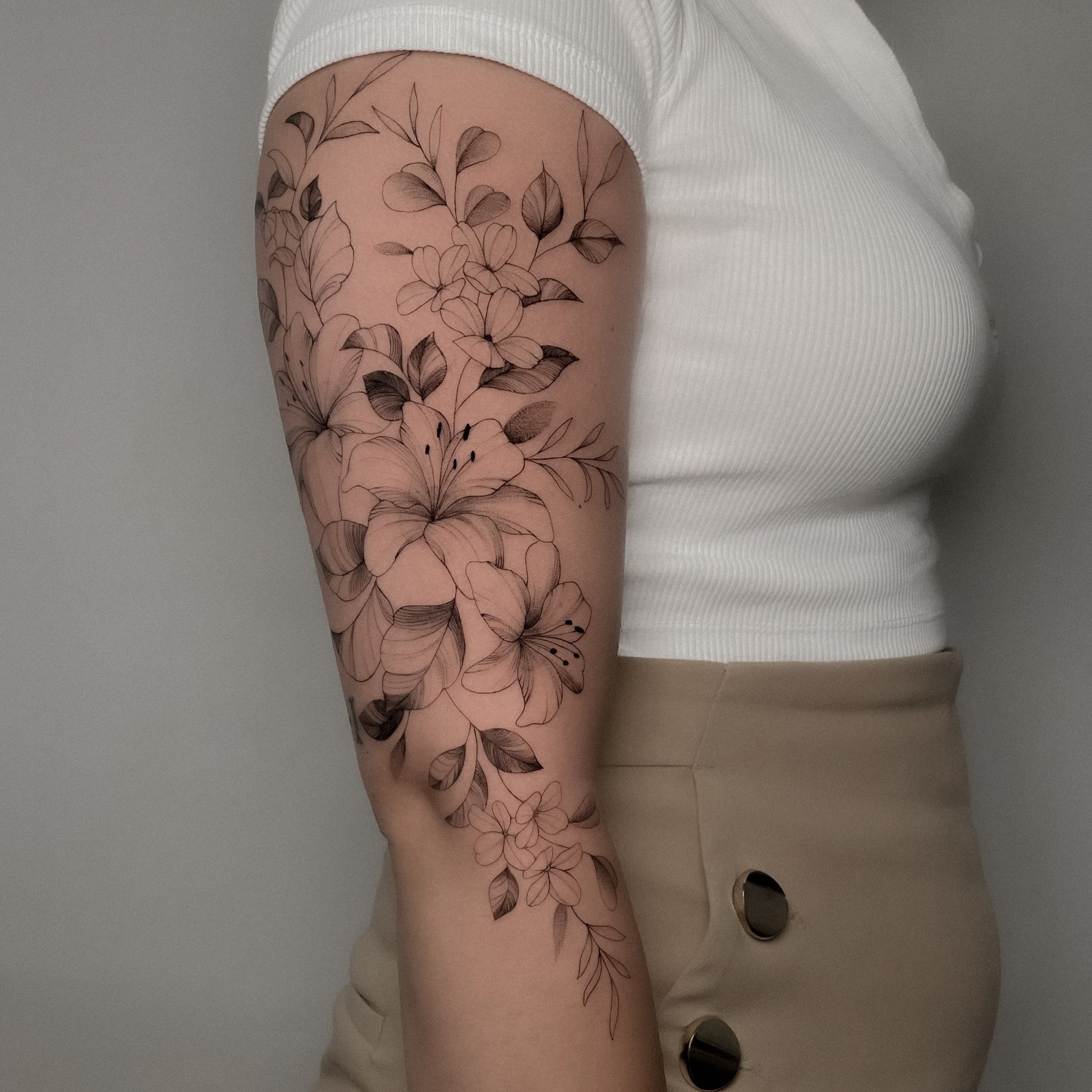 Květiny vždy vypadají velmi barevně a efektivně jak na ženském, tak na mužském těle.