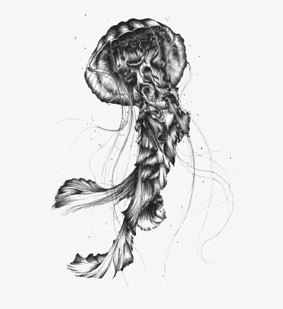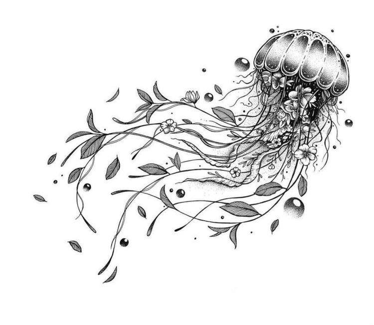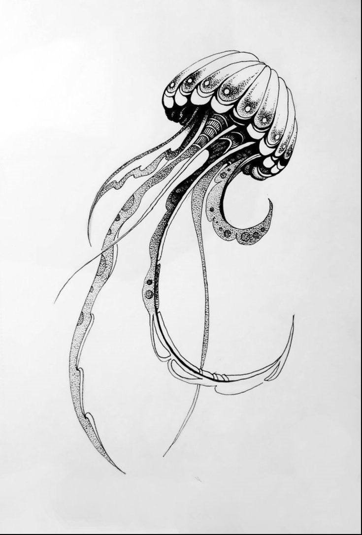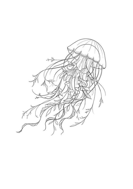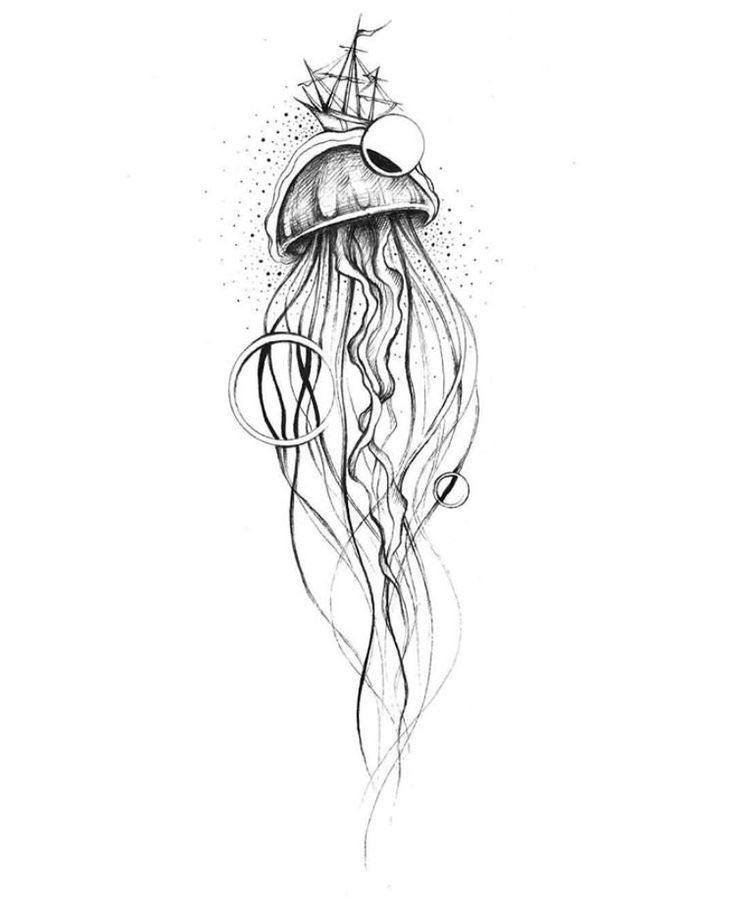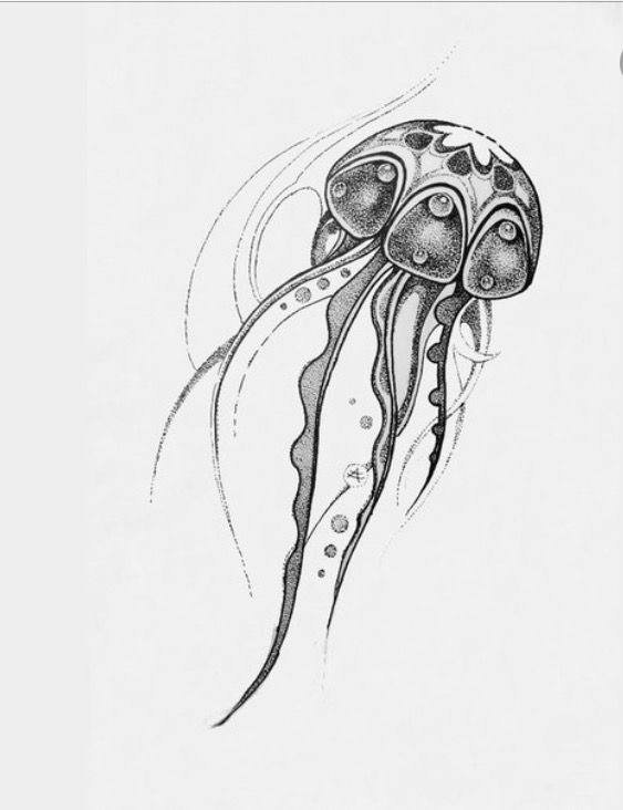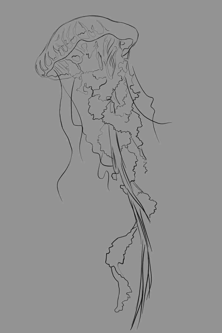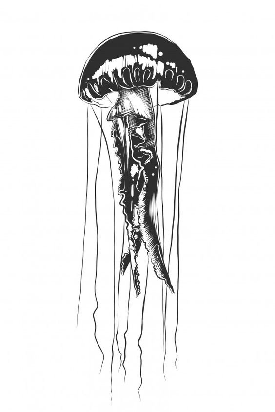 Krásný mořský tvor, který má mnoho velikostí a barev, dobyvatel nejvzdálenějších koutů oceánu, medúza, málo používaný náčrt pro tetování.