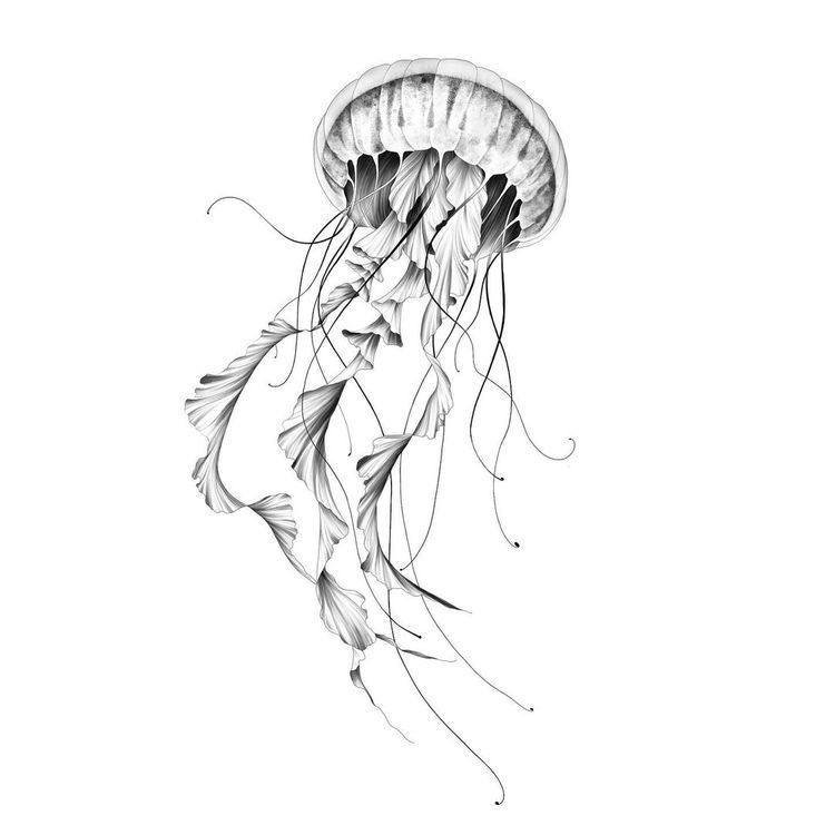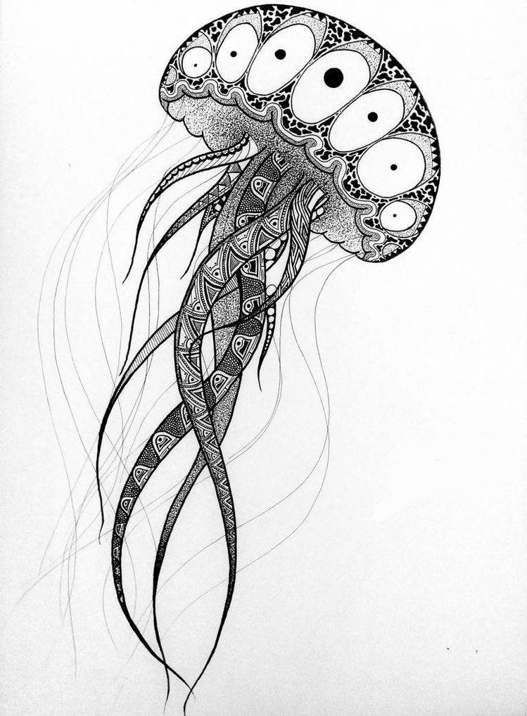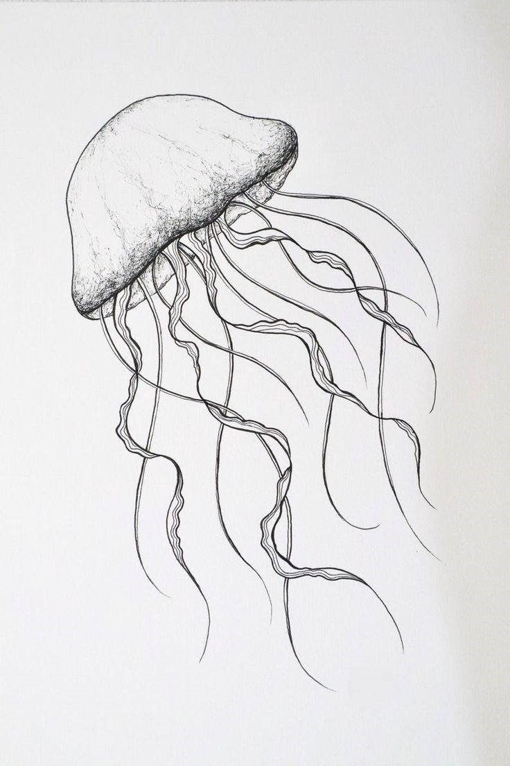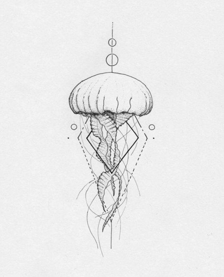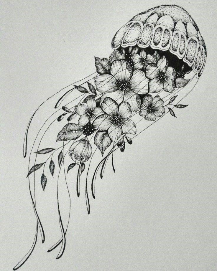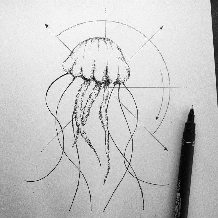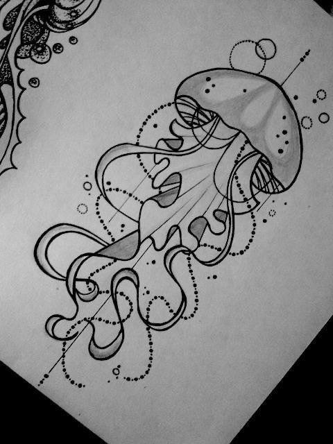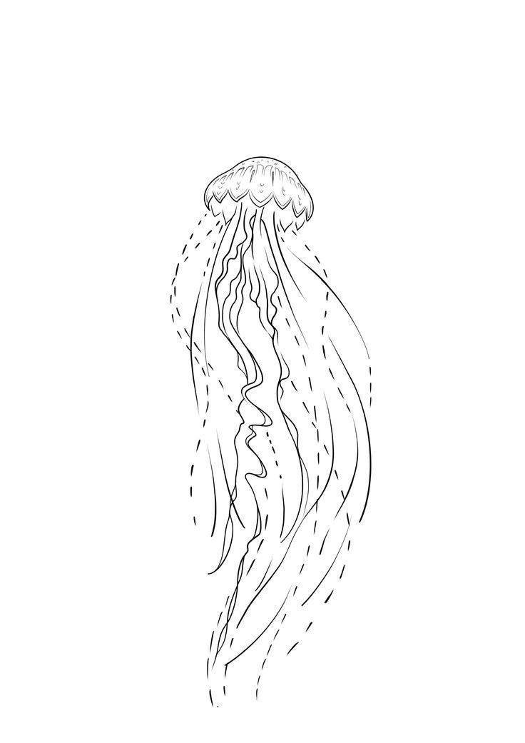 Krásný mořský tvor, který má mnoho velikostí a barev, dobyvatel nejvzdálenějších koutů oceánu, medúza, málo používaný náčrt pro tetování.