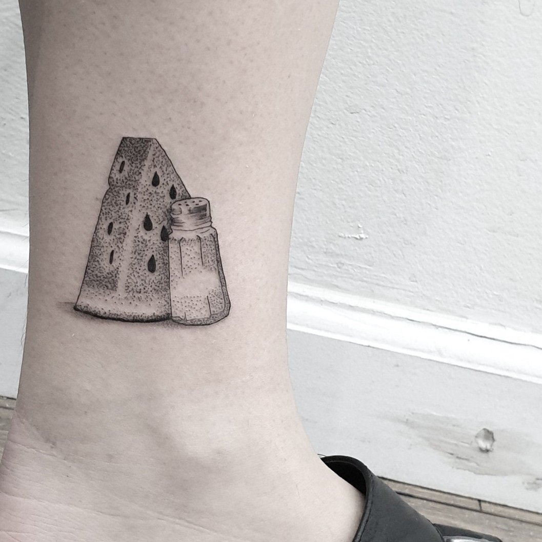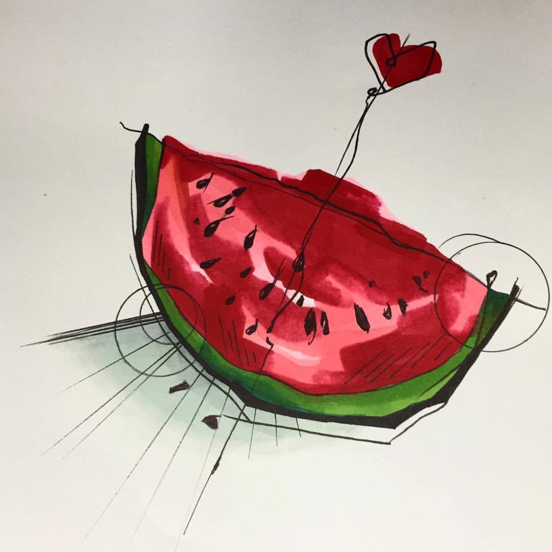 Skica melounu přenesená na tělo může mluvit za mnohé. Ovoce samo o sobě znamená přítomnost skrytého tajemství, obrovského vnitřního světa: protože meloun je navenek zelený a není atraktivní, ale uvnitř je sladký a chutný, je pro takový výklad skvělý.