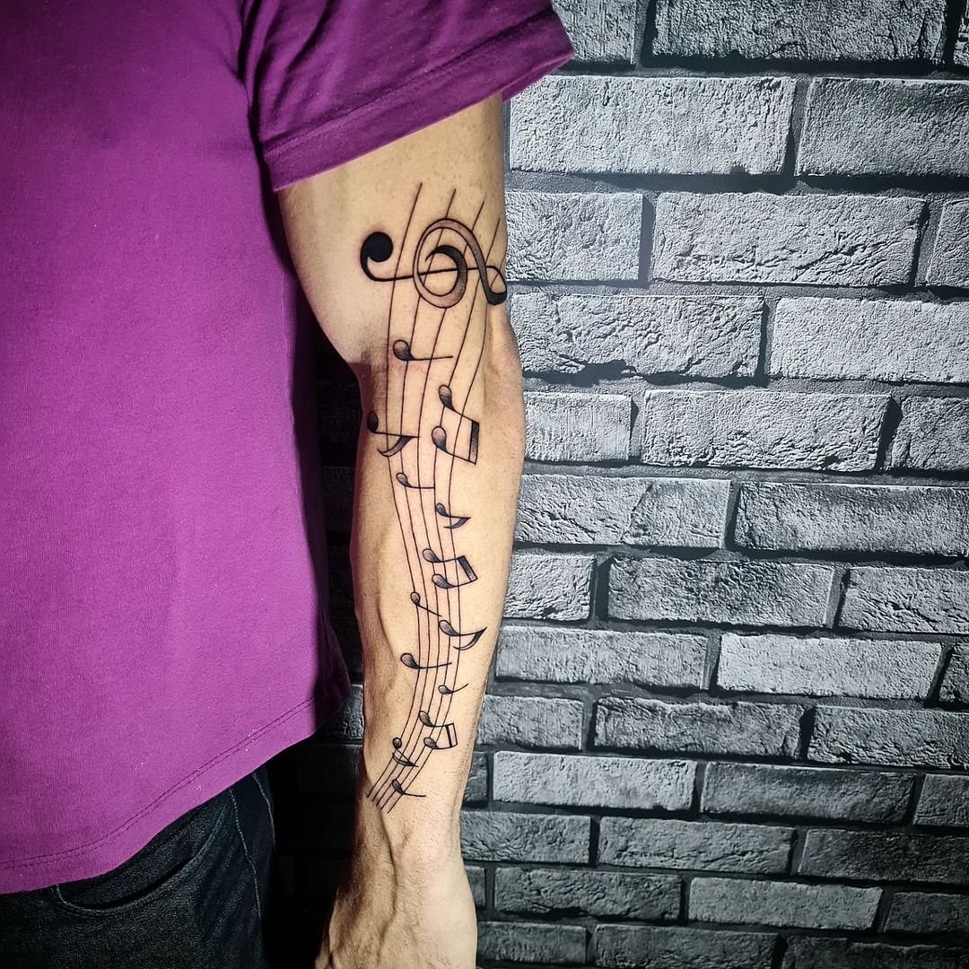 Návrh tetování not je vhodný pro jakoukoli část těla. Hodně zde záleží na samotném klientovi.
