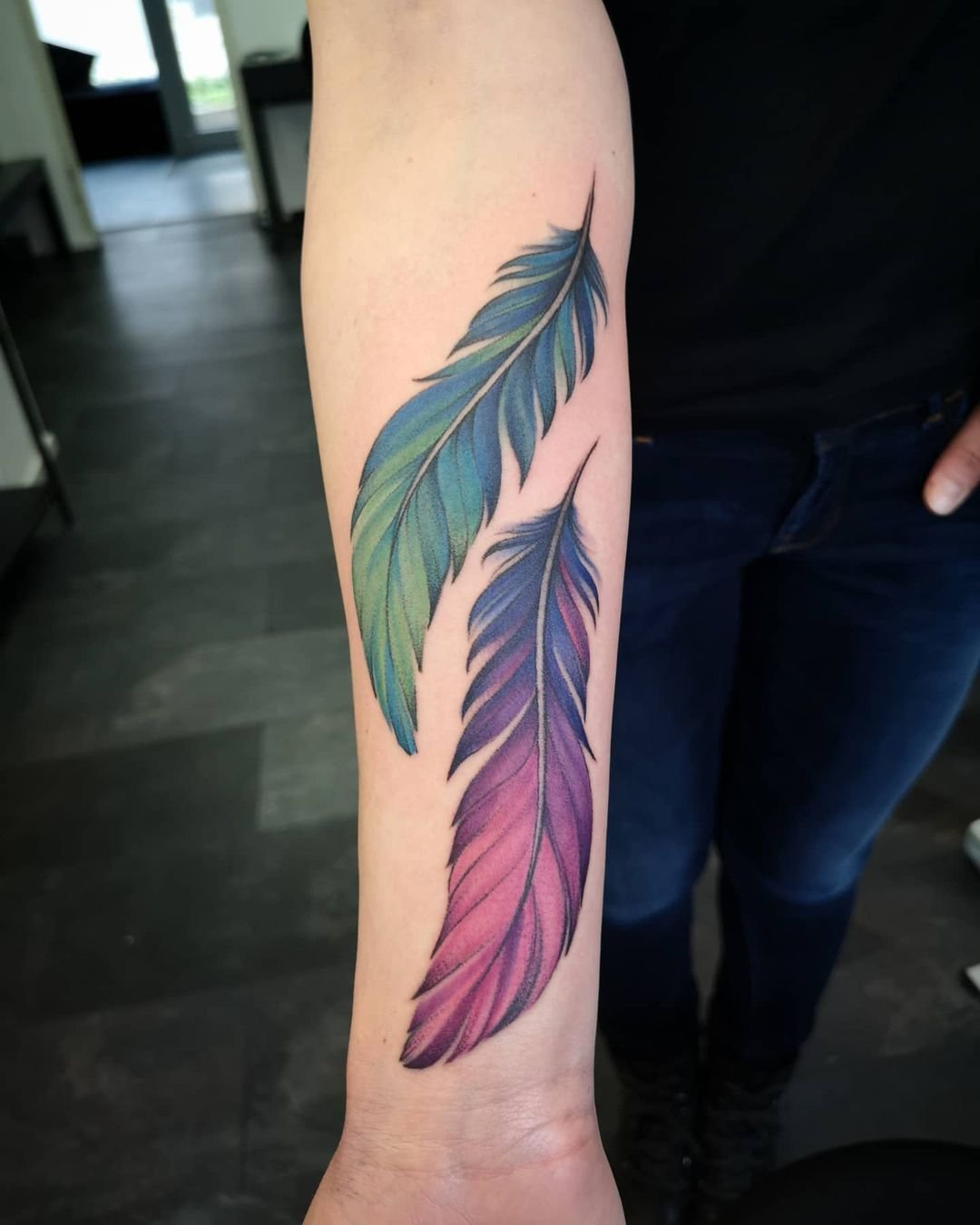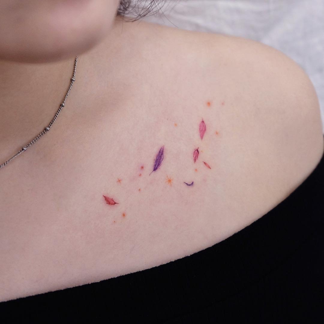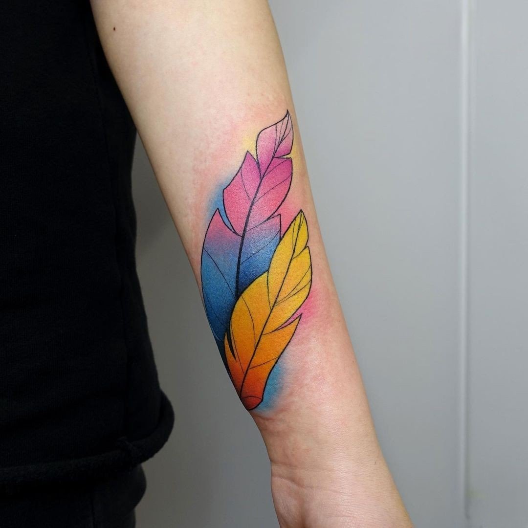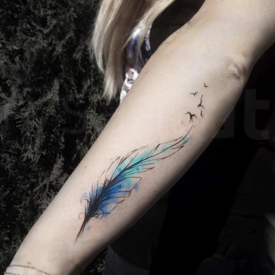 Na různých částech těla může být vytetováno jedno pírko libovolného preferovaného ptáka (sovy, vlaštovky, orla, ohniváka atd.). Obrázek může být v široké škále barev. Může být zobrazeno buď klasické pírko v černobílém provedení, nebo různá pírka v jasných odstínech. Stojí za zmínku, že barva peří má také svůj speciální význam.