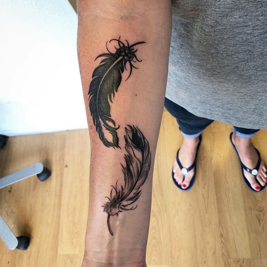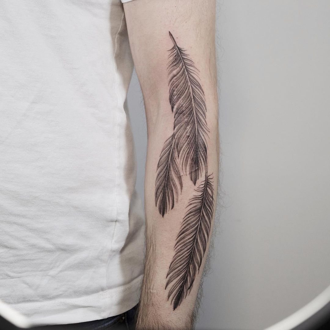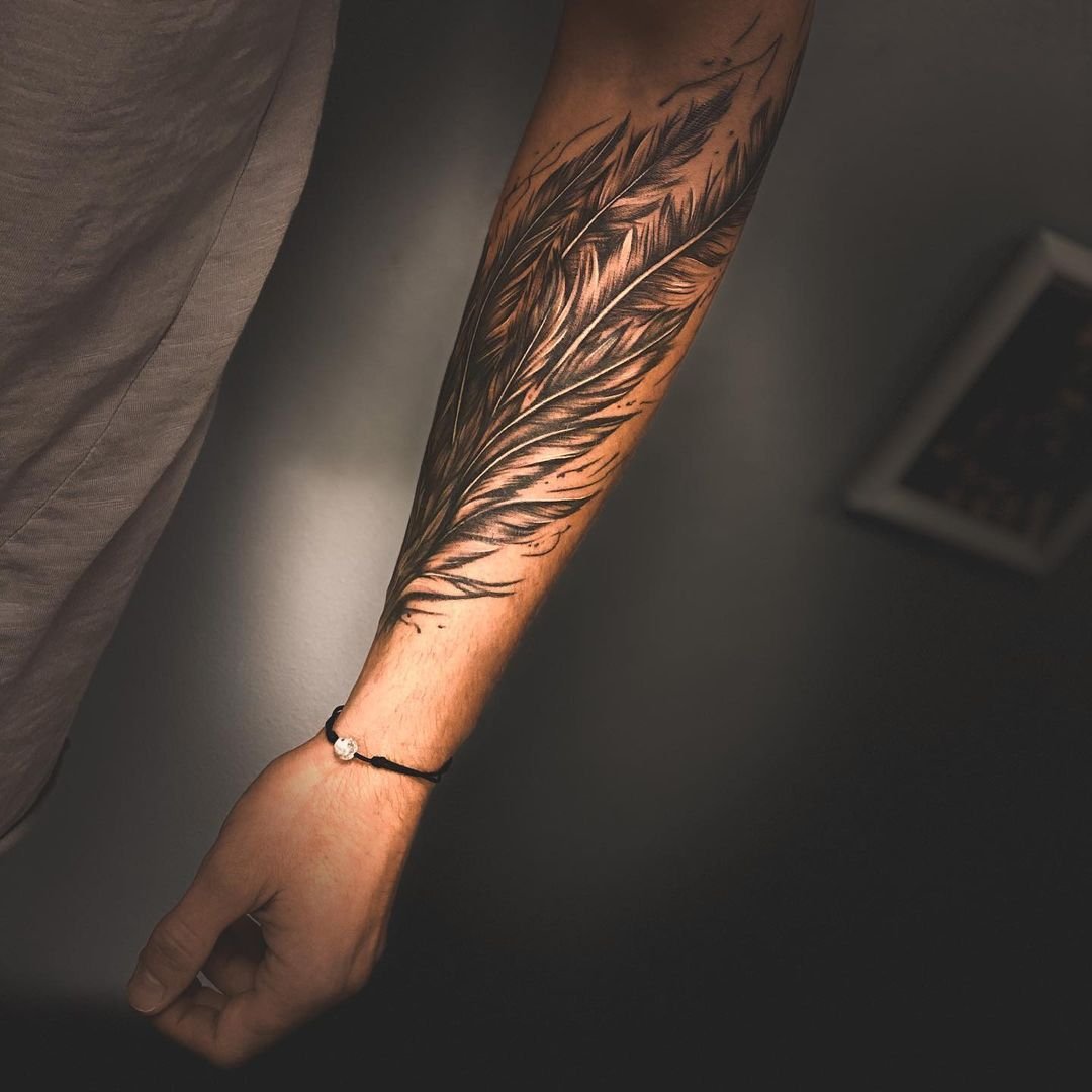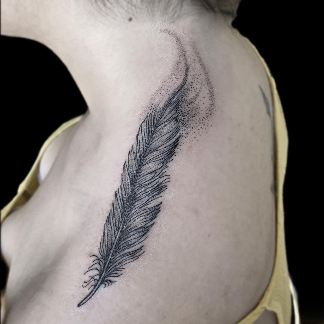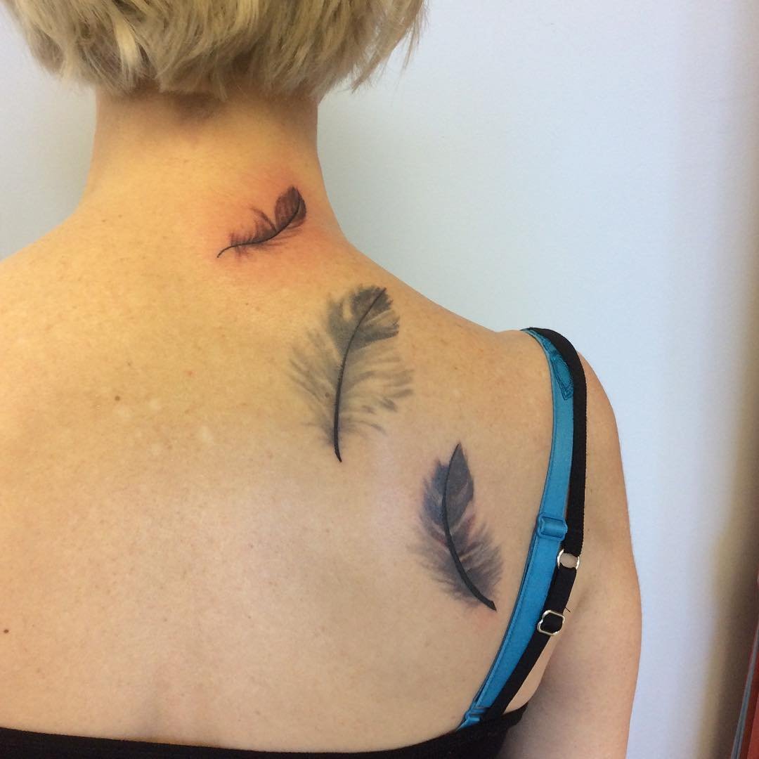 Tetování peří vypadá vždy velmi originálně a zajímavě.