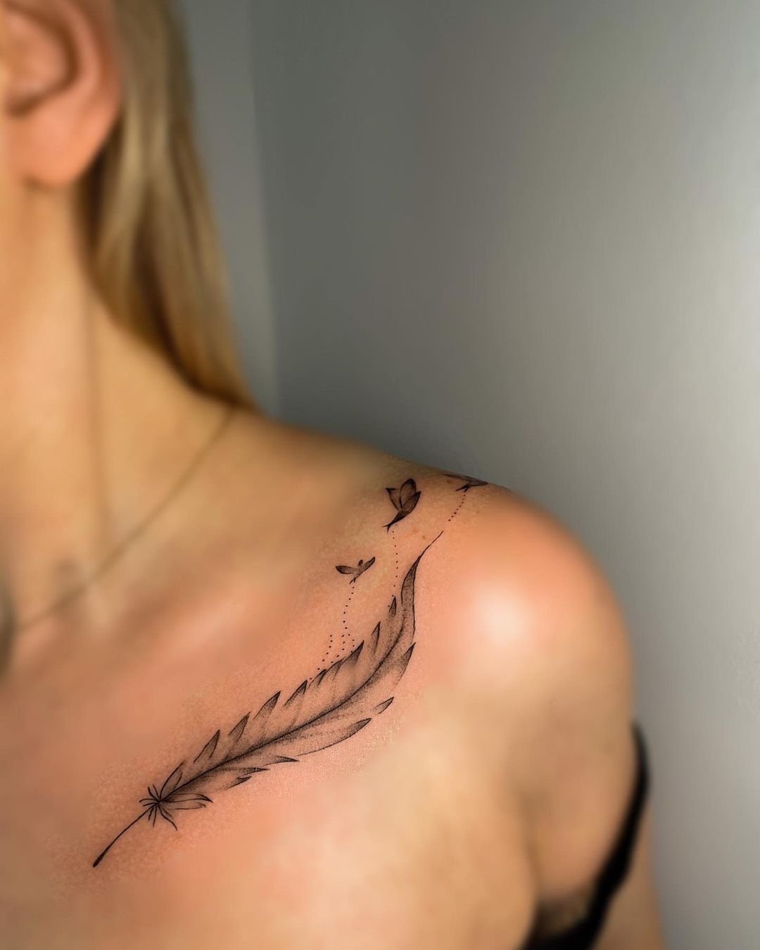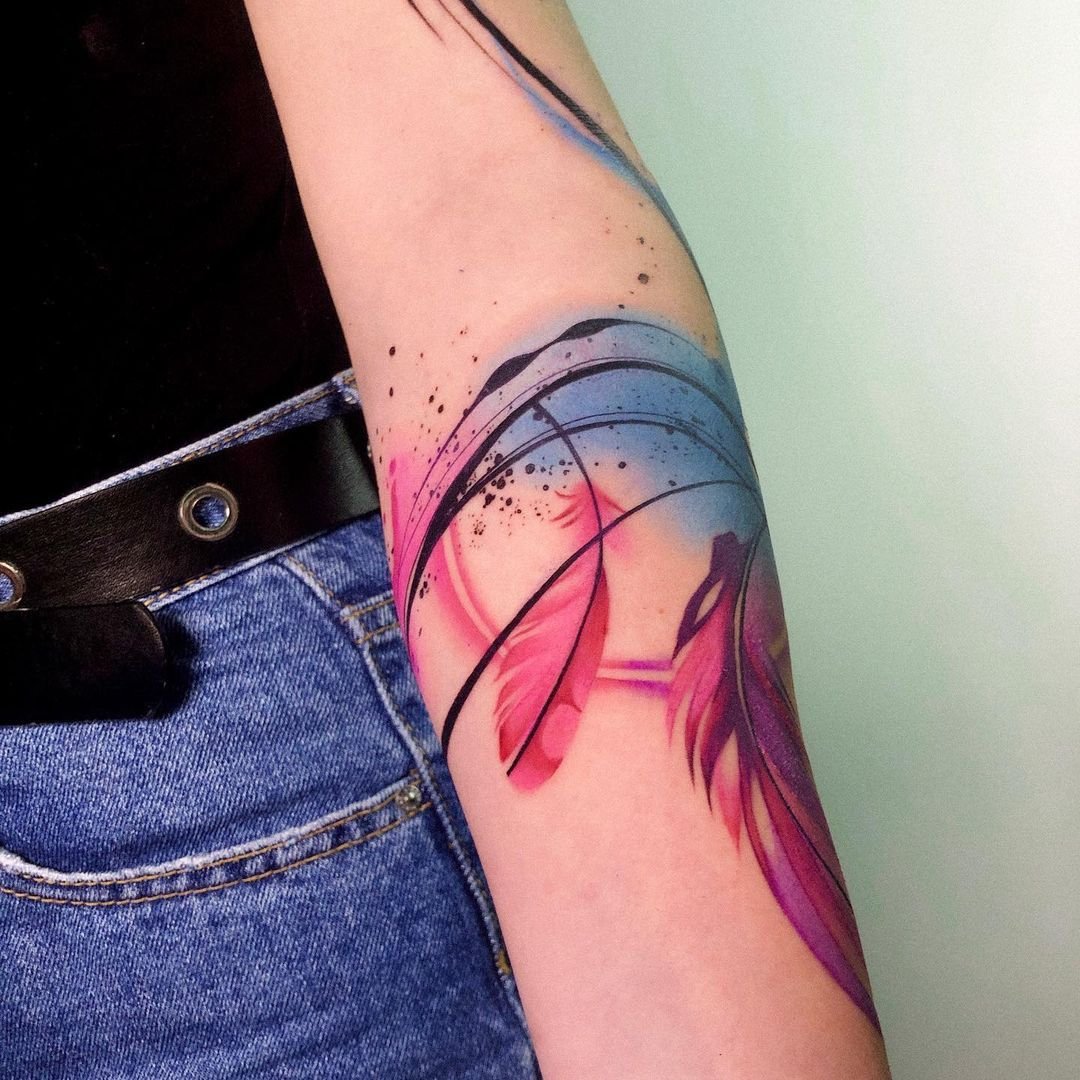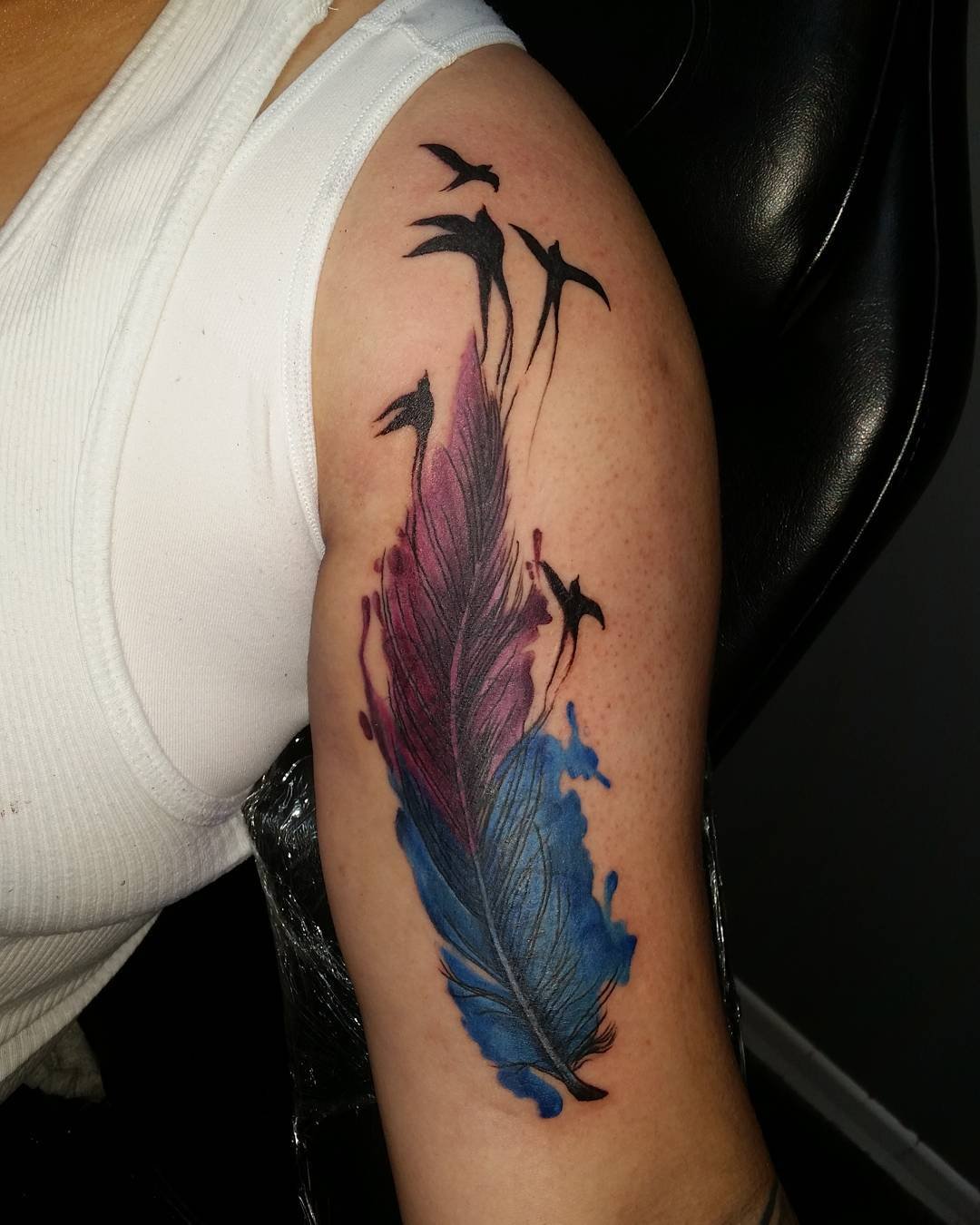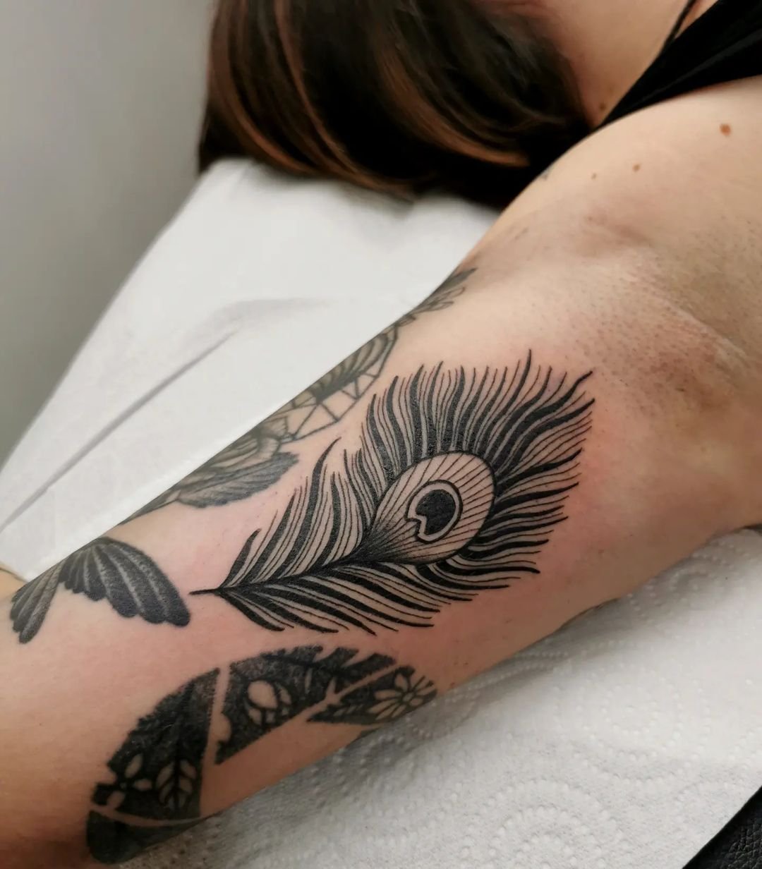 Tetování peří vypadá vždy velmi originálně a zajímavě.