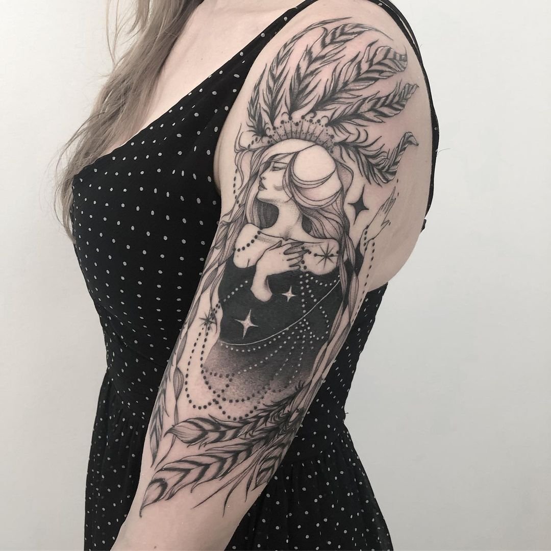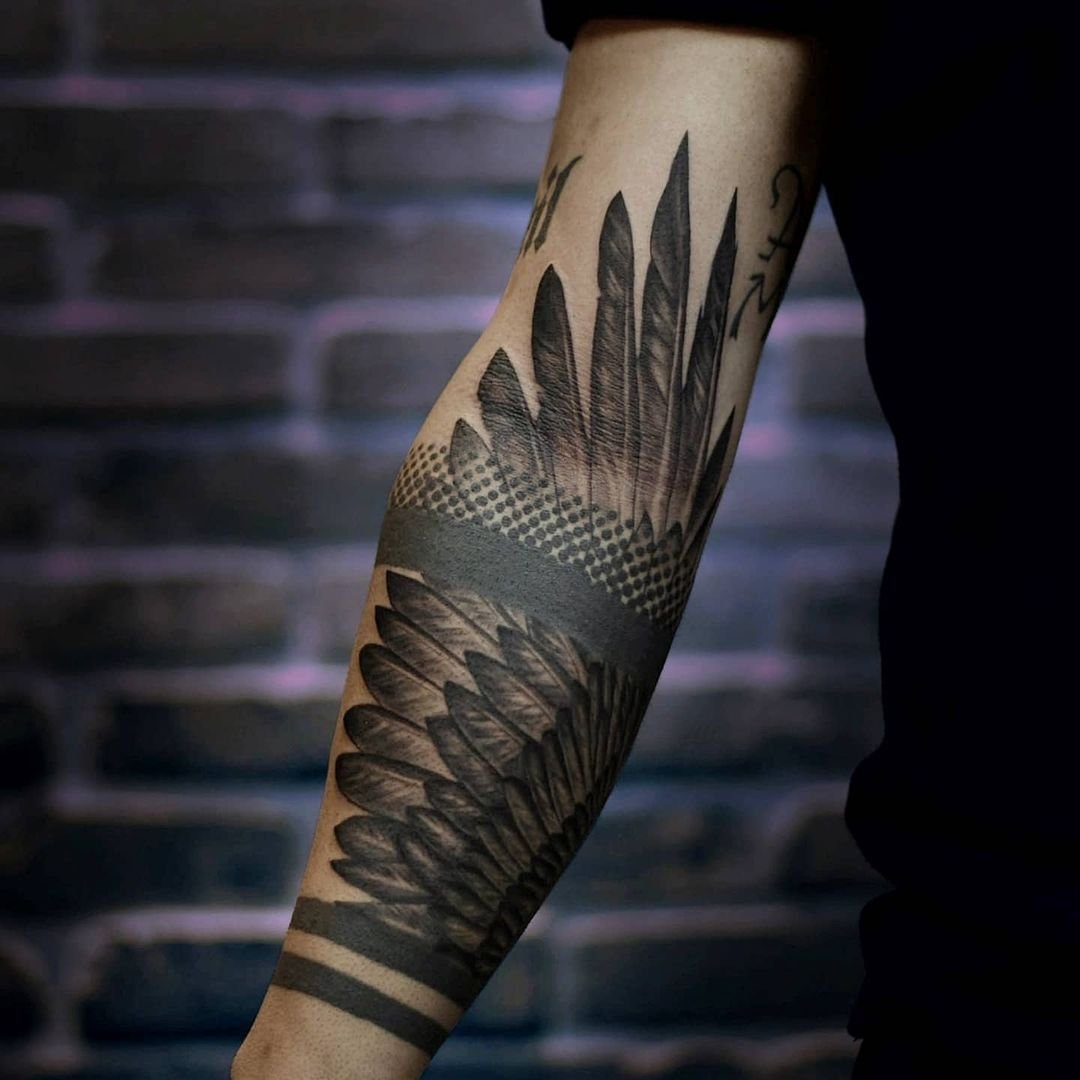 Staré indiánské kmeny začaly na svá těla aplikovat obrázky peří jako první. Indiáni věřili, že jim peří dodává sílu, odvahu a sebevědomí, propůjčuje nesmrtelnost a spojuje je se starověkými duchy.