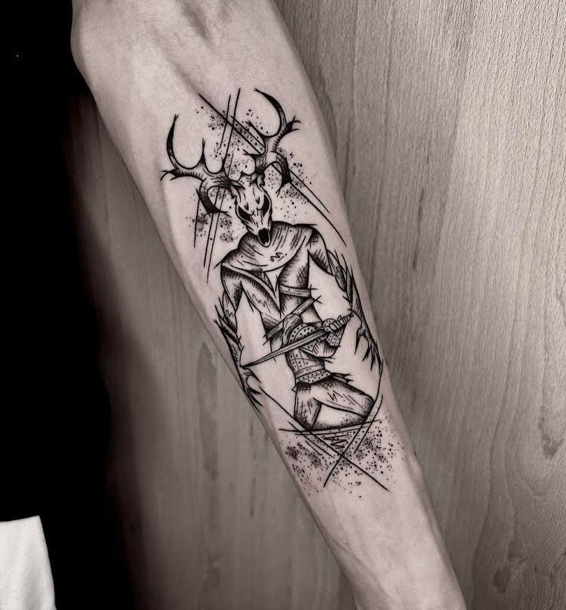 Tetování ve stylu Sketch často nepředstavuje jen rozměrnou kresbu na těle, ale celou scénu nebo dokonce příběh.