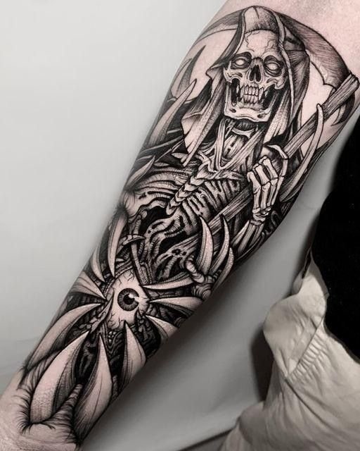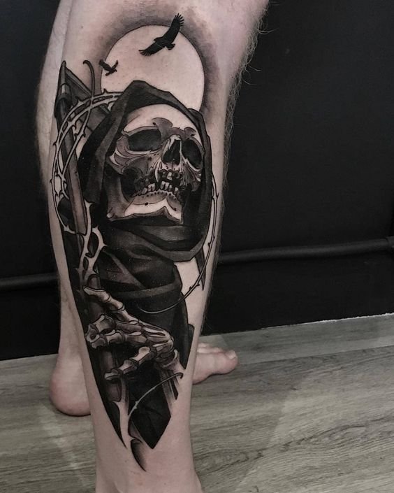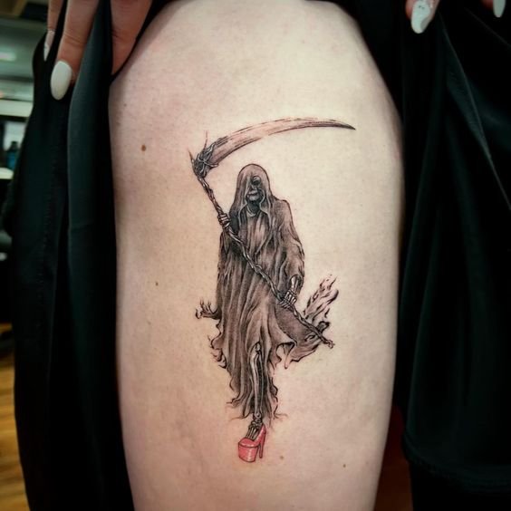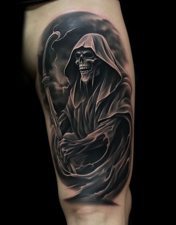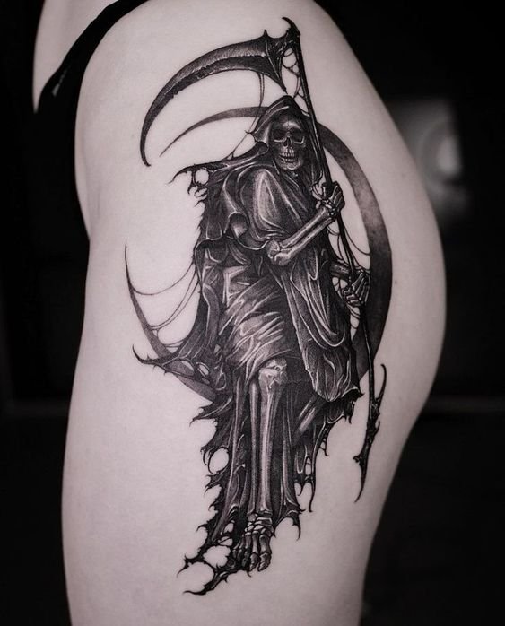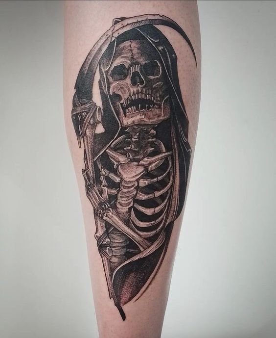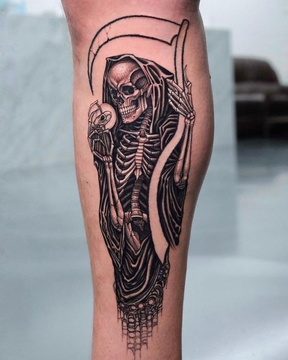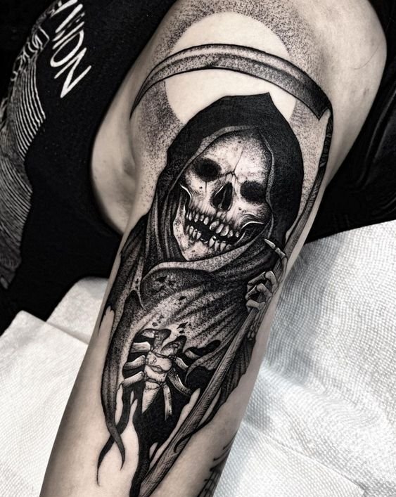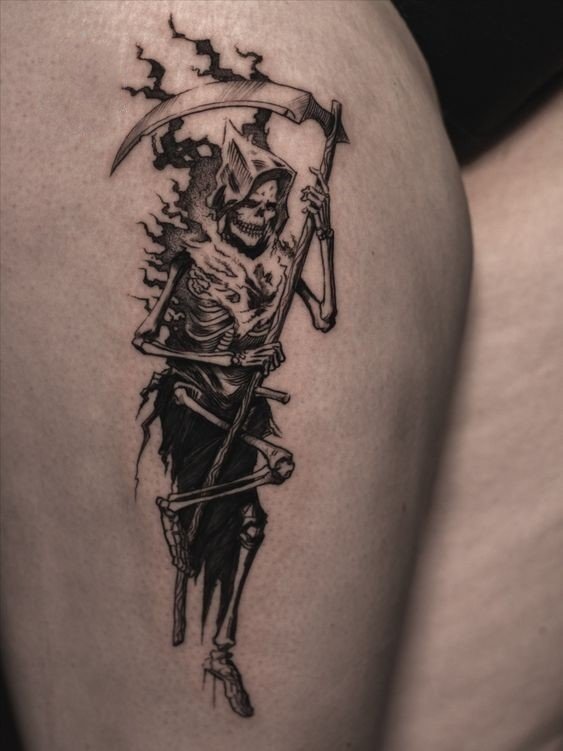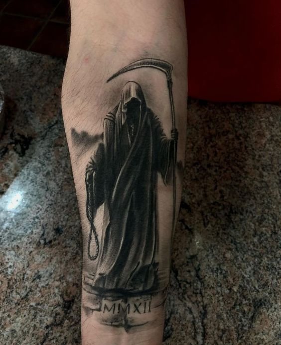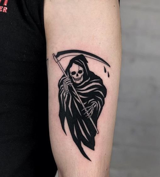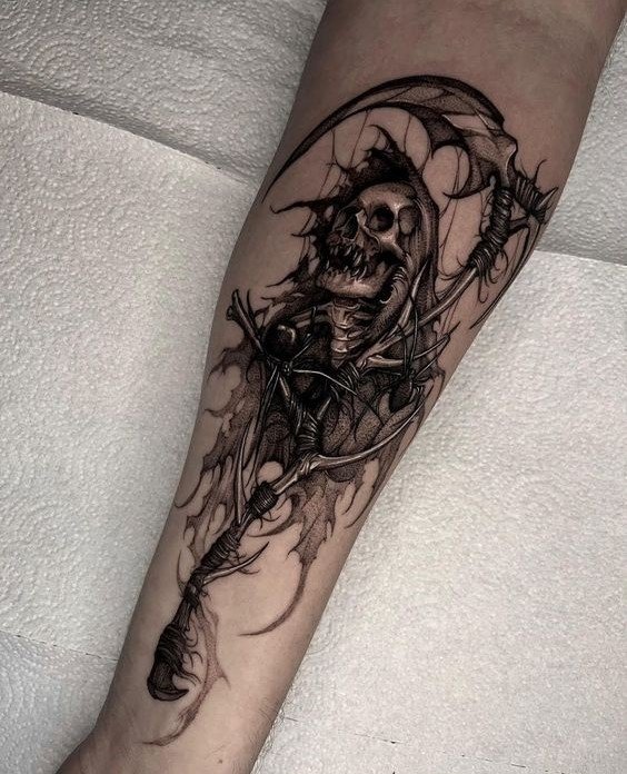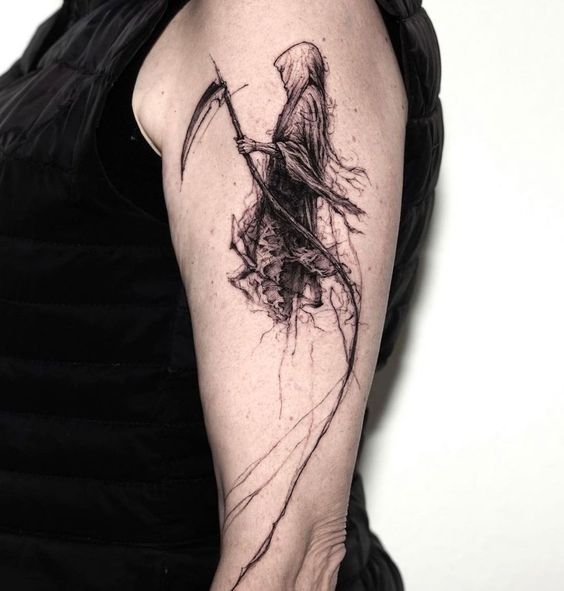V oblasti uměleckého tetování jsou velmi oblíbené skici smrti s kosou.