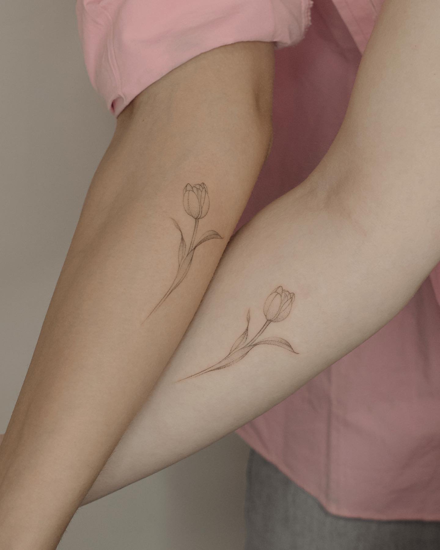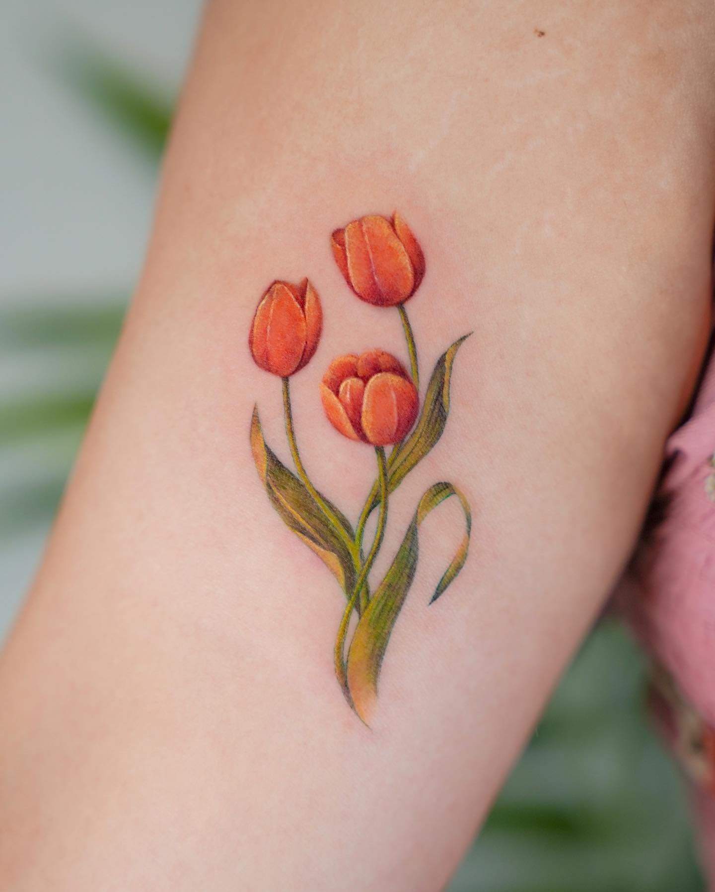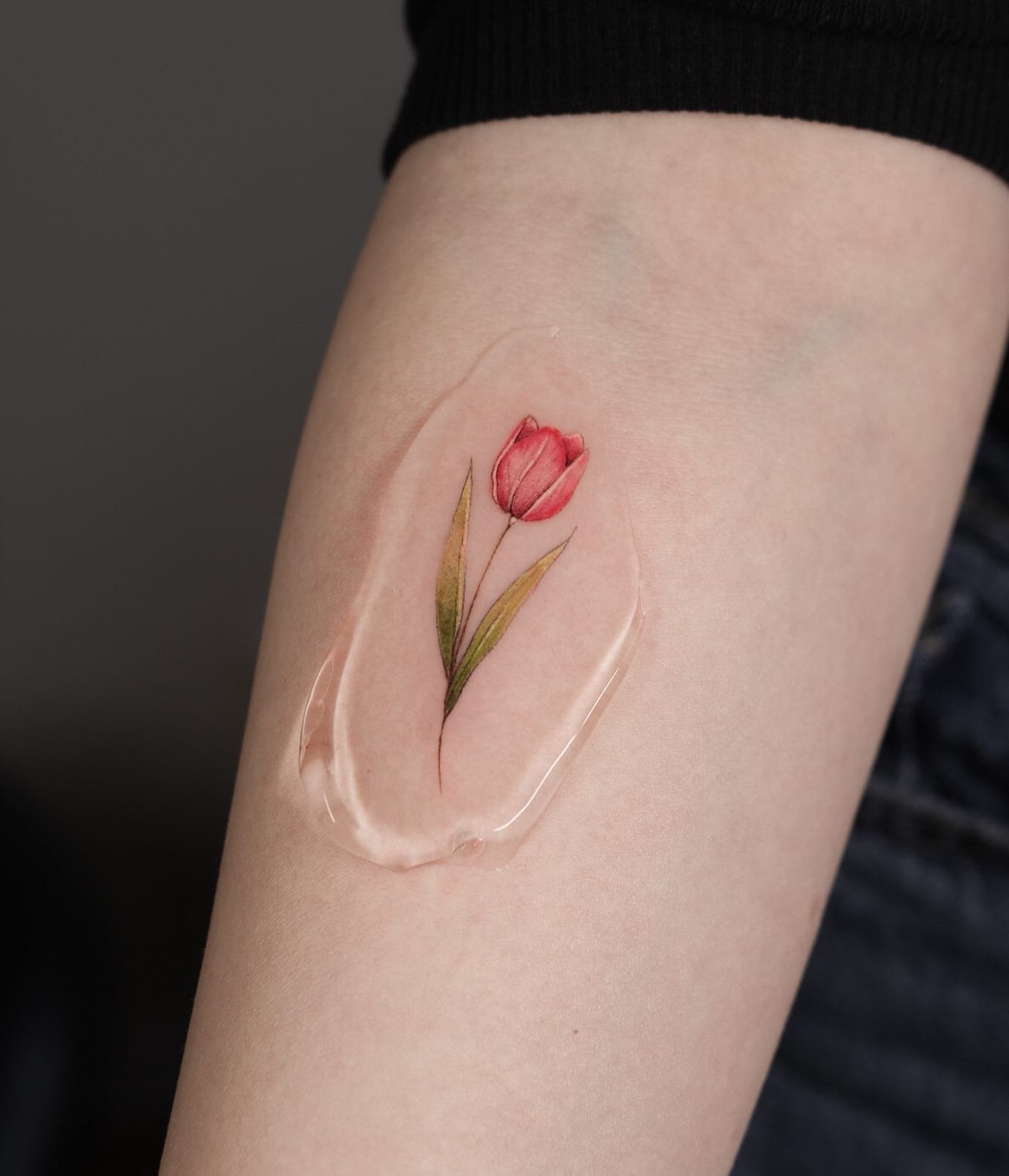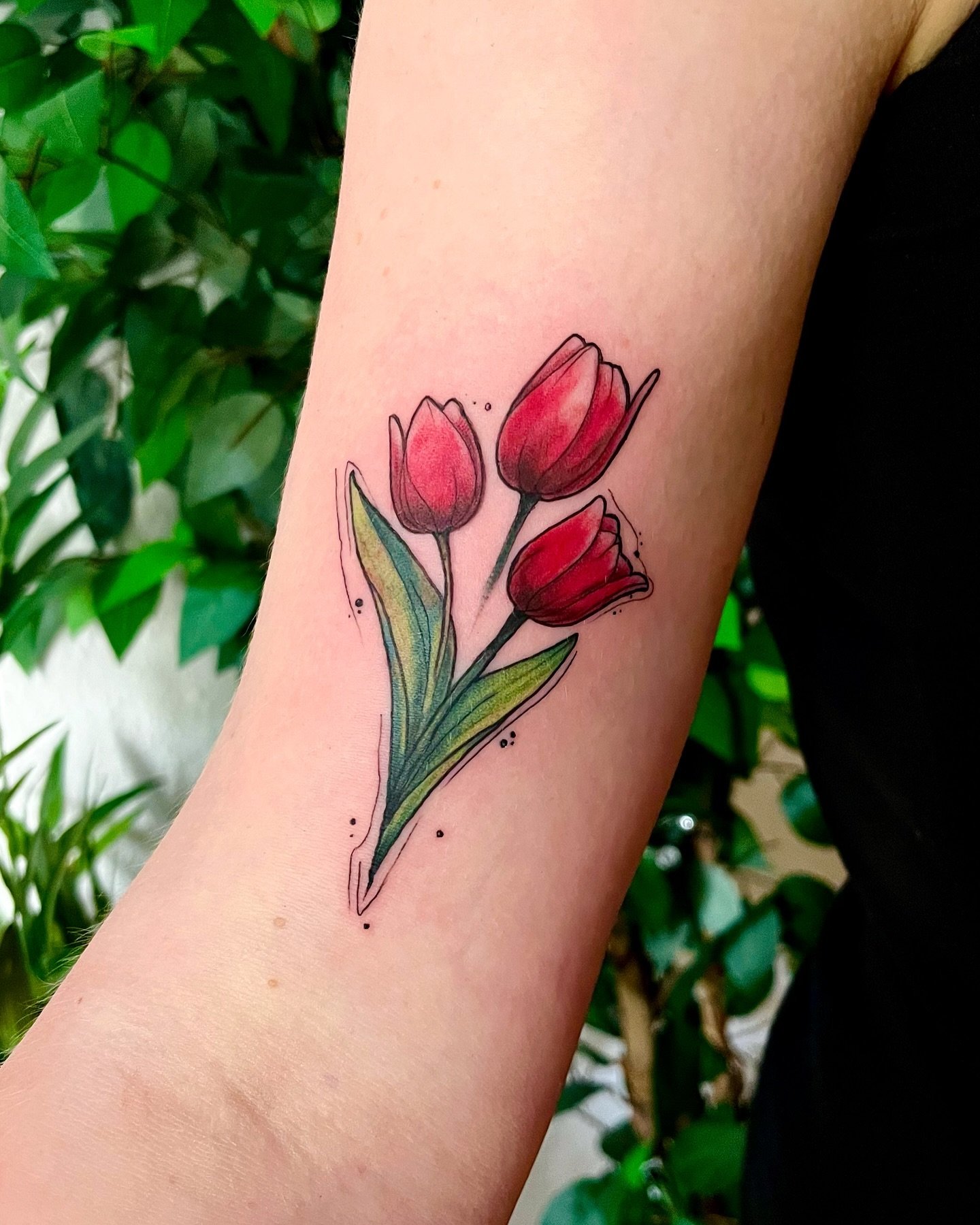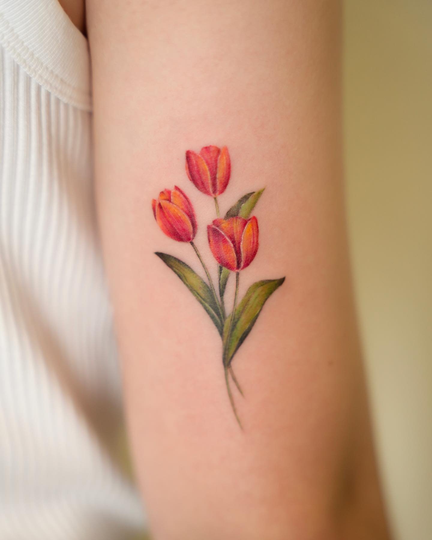 Pro tetování se obvykle volí červené a žluté tulipány, méně často květ bílé barvy. Mimochodem, barva tulipánu také ovlivňuje význam tetování.