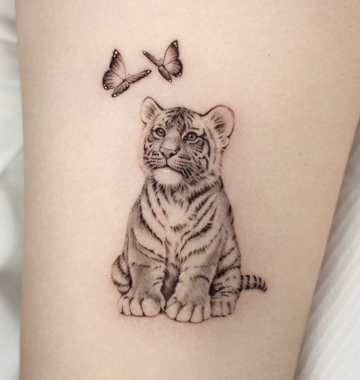 Obvykle je tygr v tetování často zobrazován ve stylu realismu, zvíře může klidně ležet na slunci, může se plížit, olizovat si tlapu nebo prostě sedět na pozadí přírodního prostředí. Vše závisí na fantazii tatéra, stejně jako na přáních klienta.