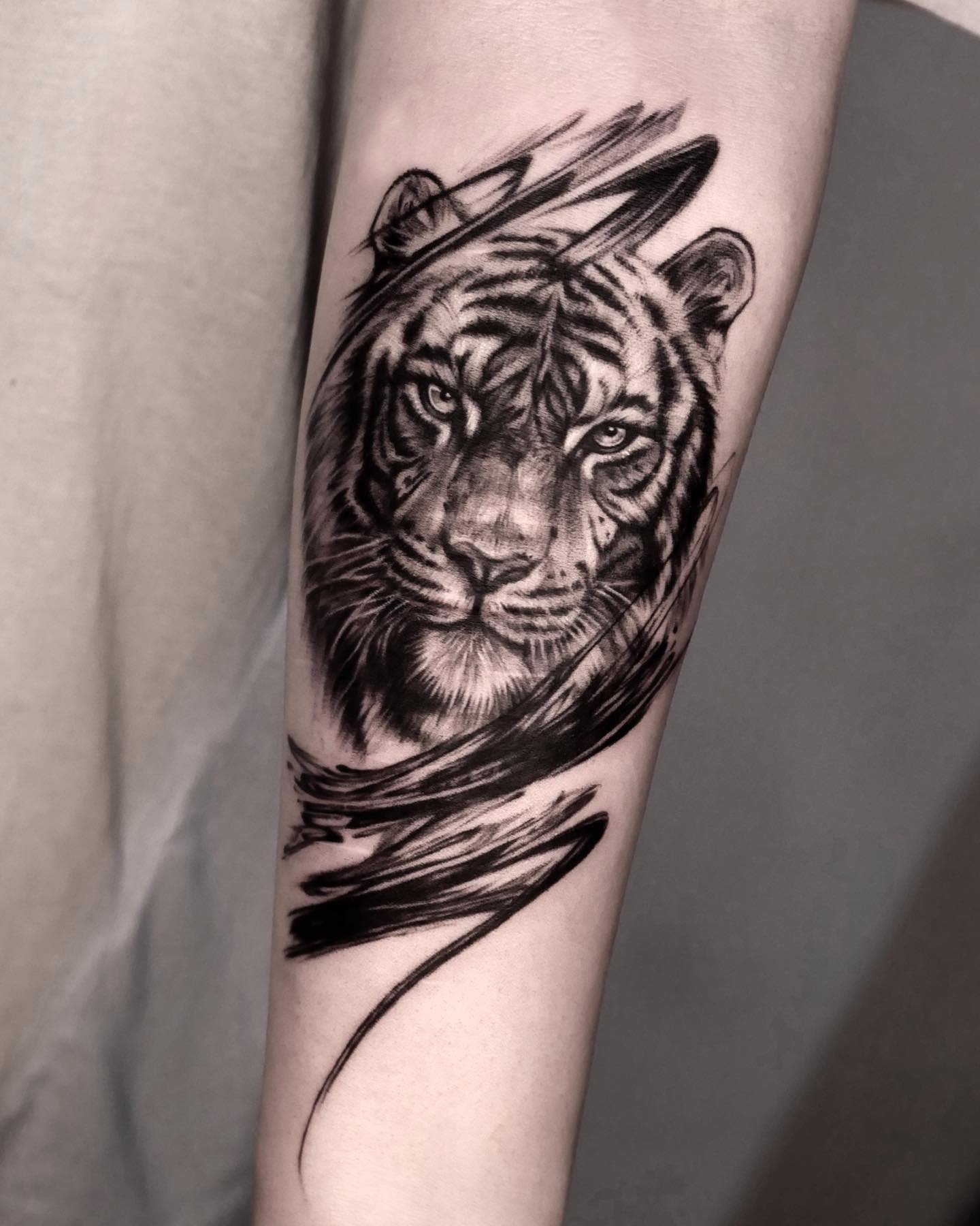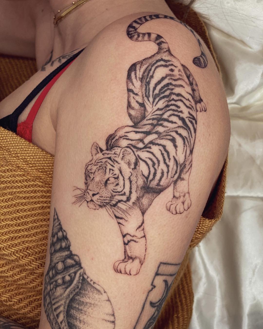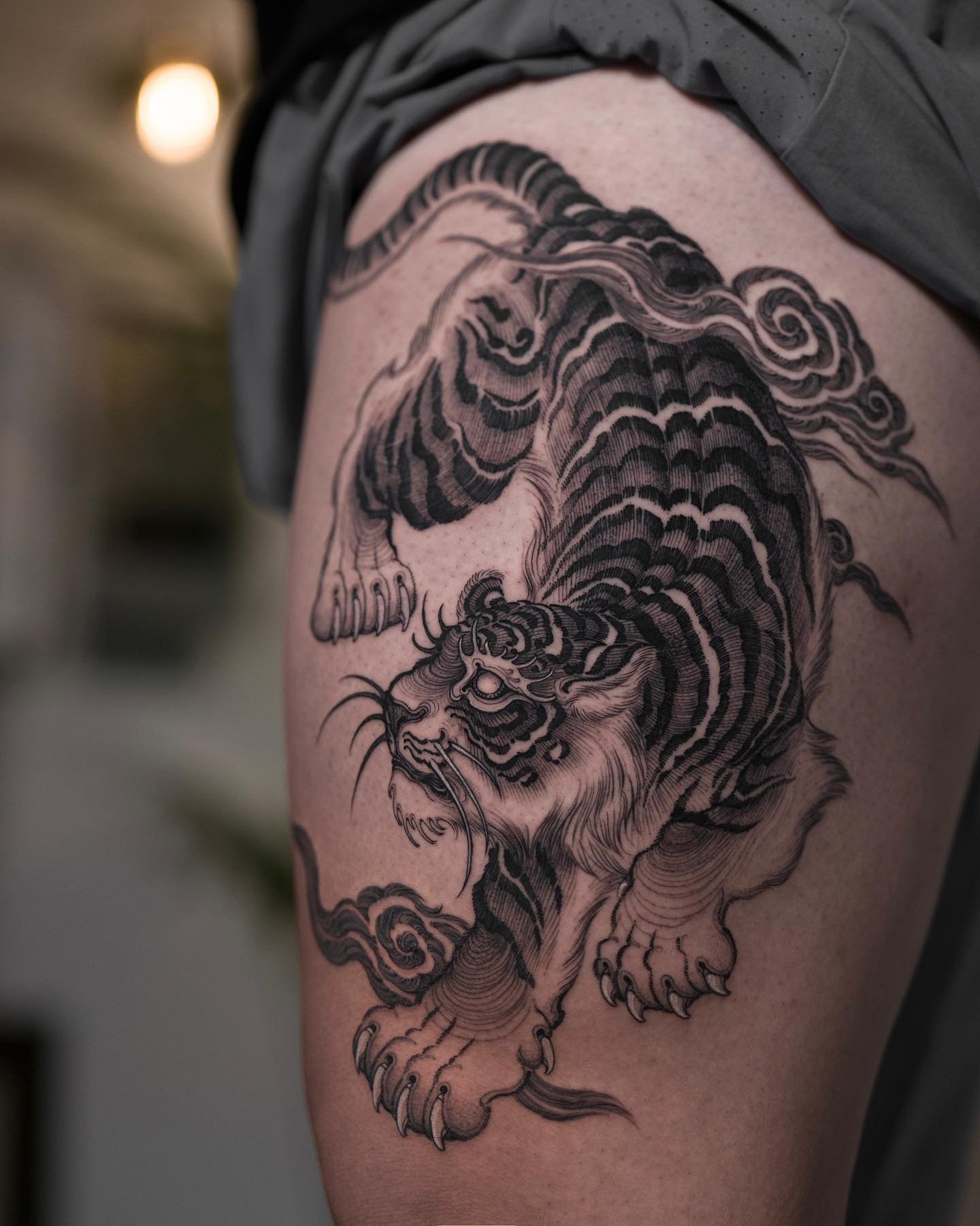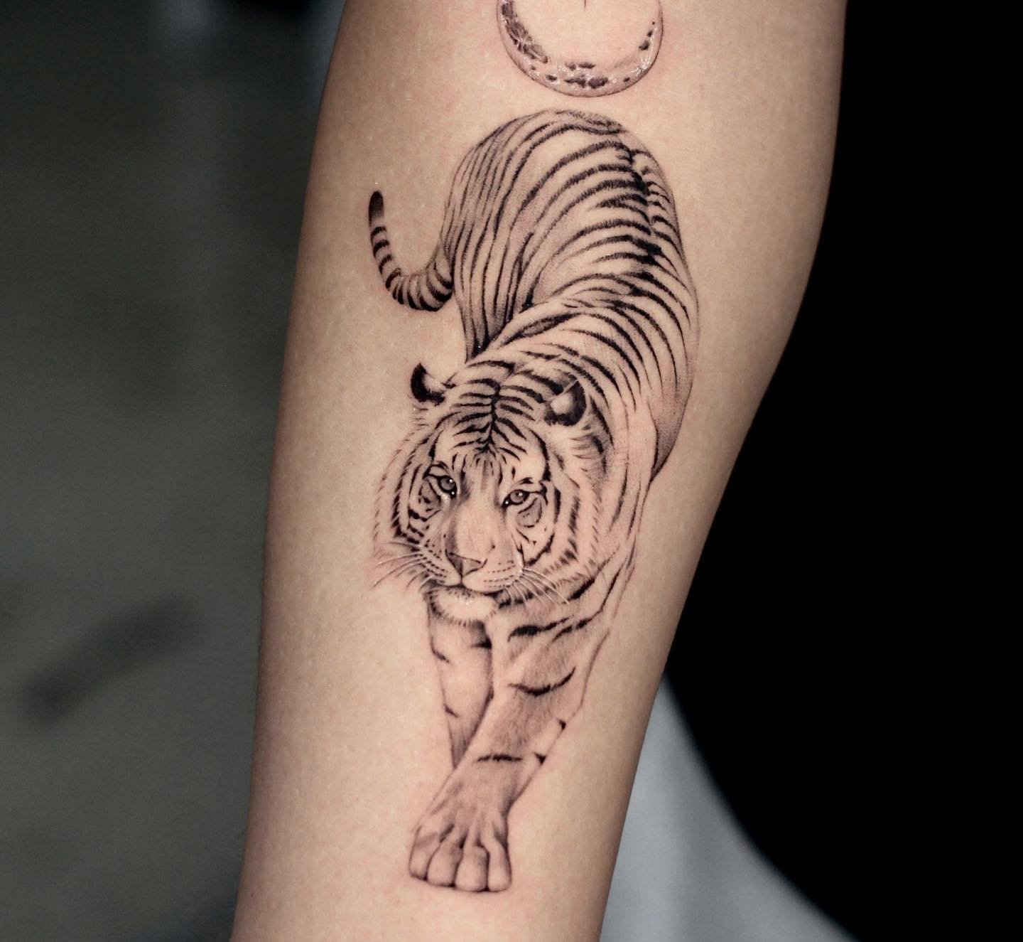 Tetování tygra má několik výkladů, závisí na dalších prvcích, s kterými je šelma zobrazena, na jejím vzhledu a také na kultuře daného národa.