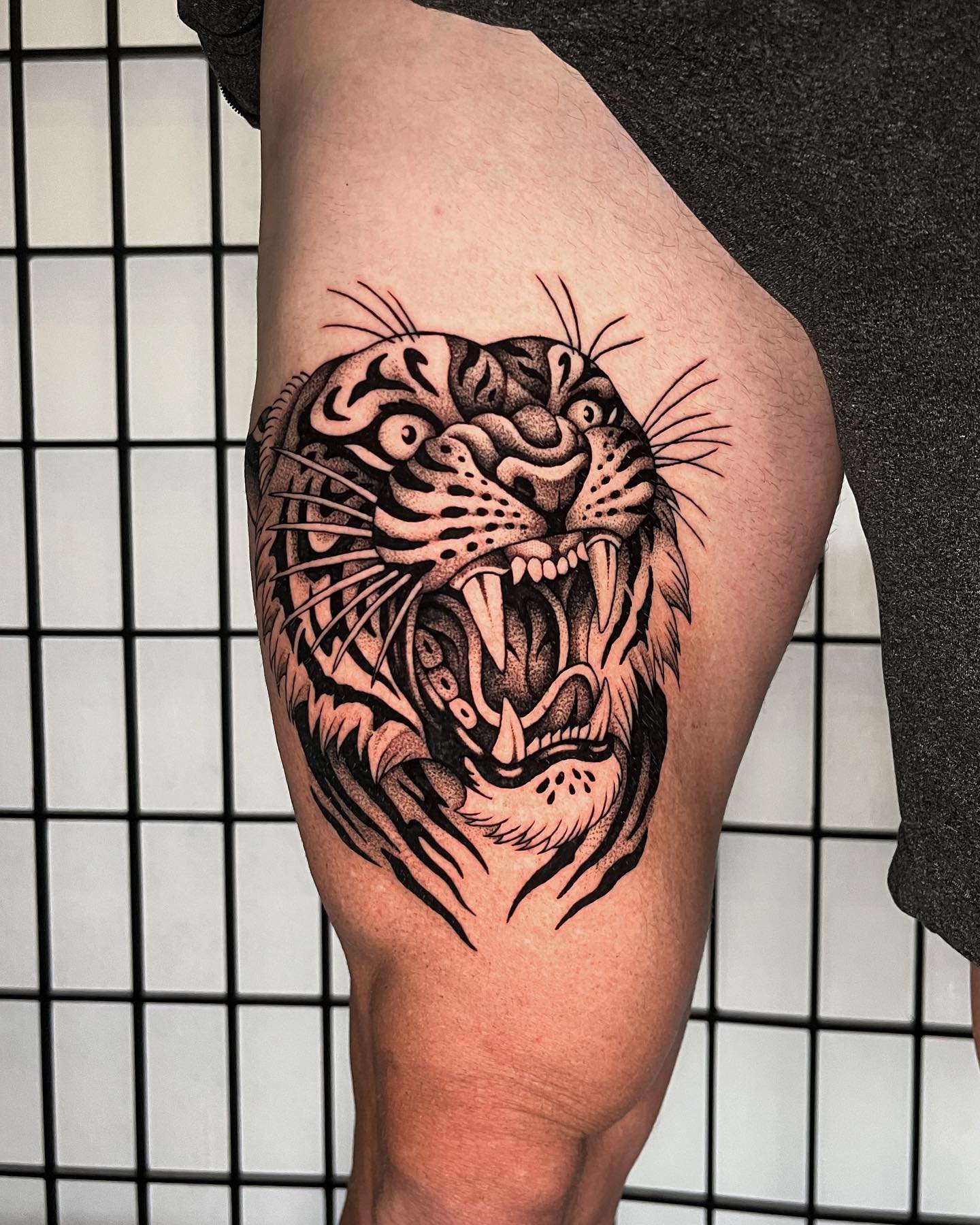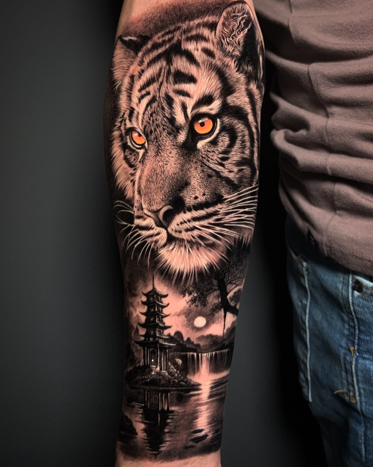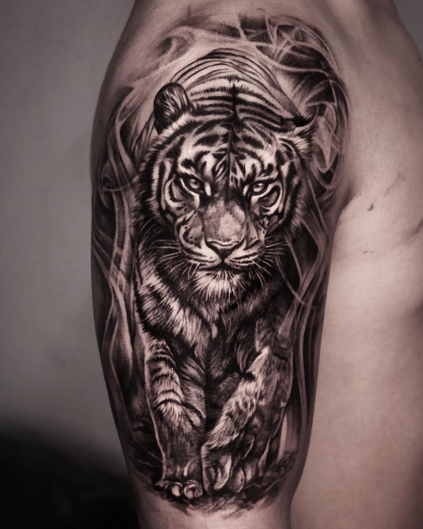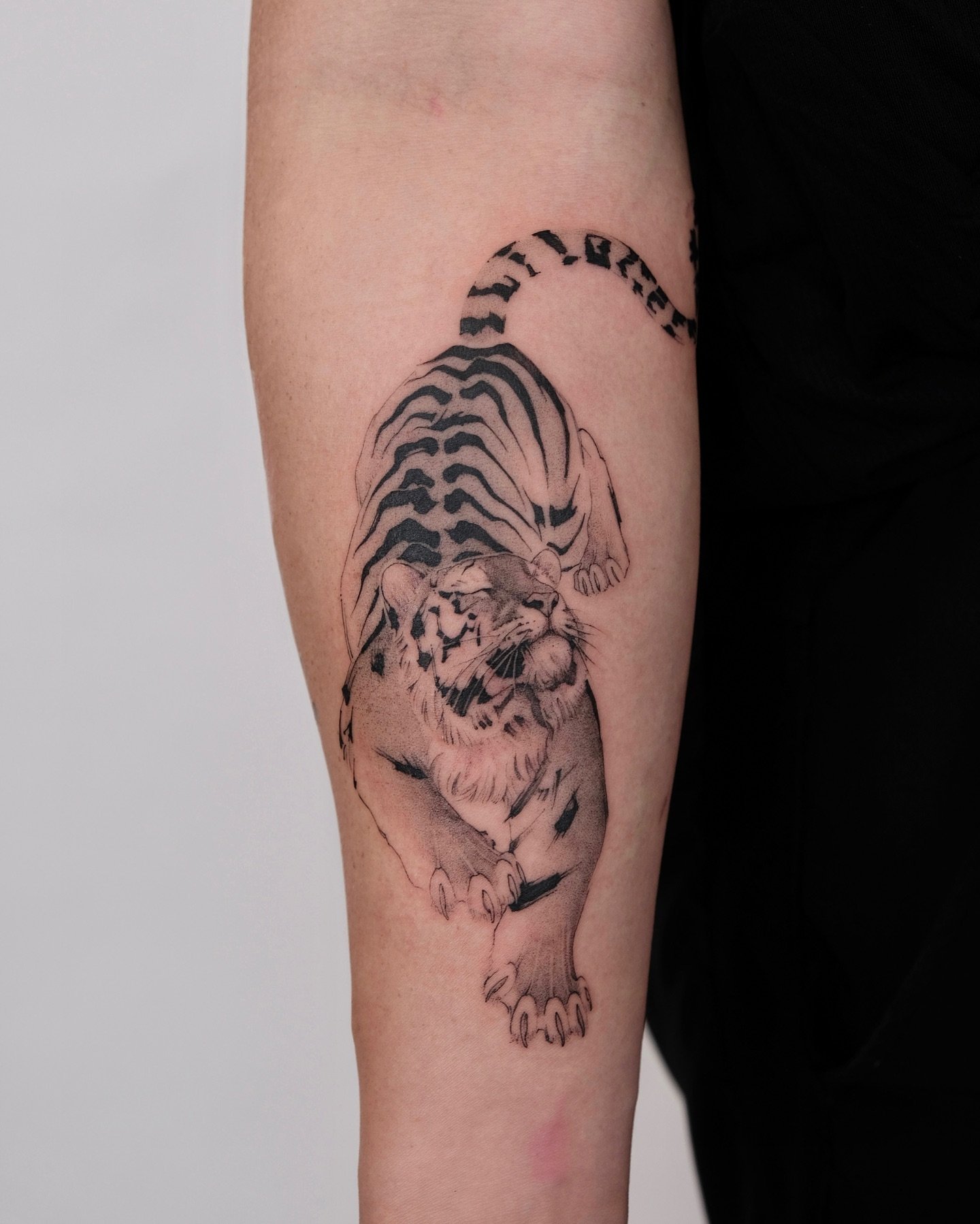 Tetování tygra má několik výkladů, závisí na dalších prvcích, s kterými je šelma zobrazena, na jejím vzhledu a také na kultuře daného národa.