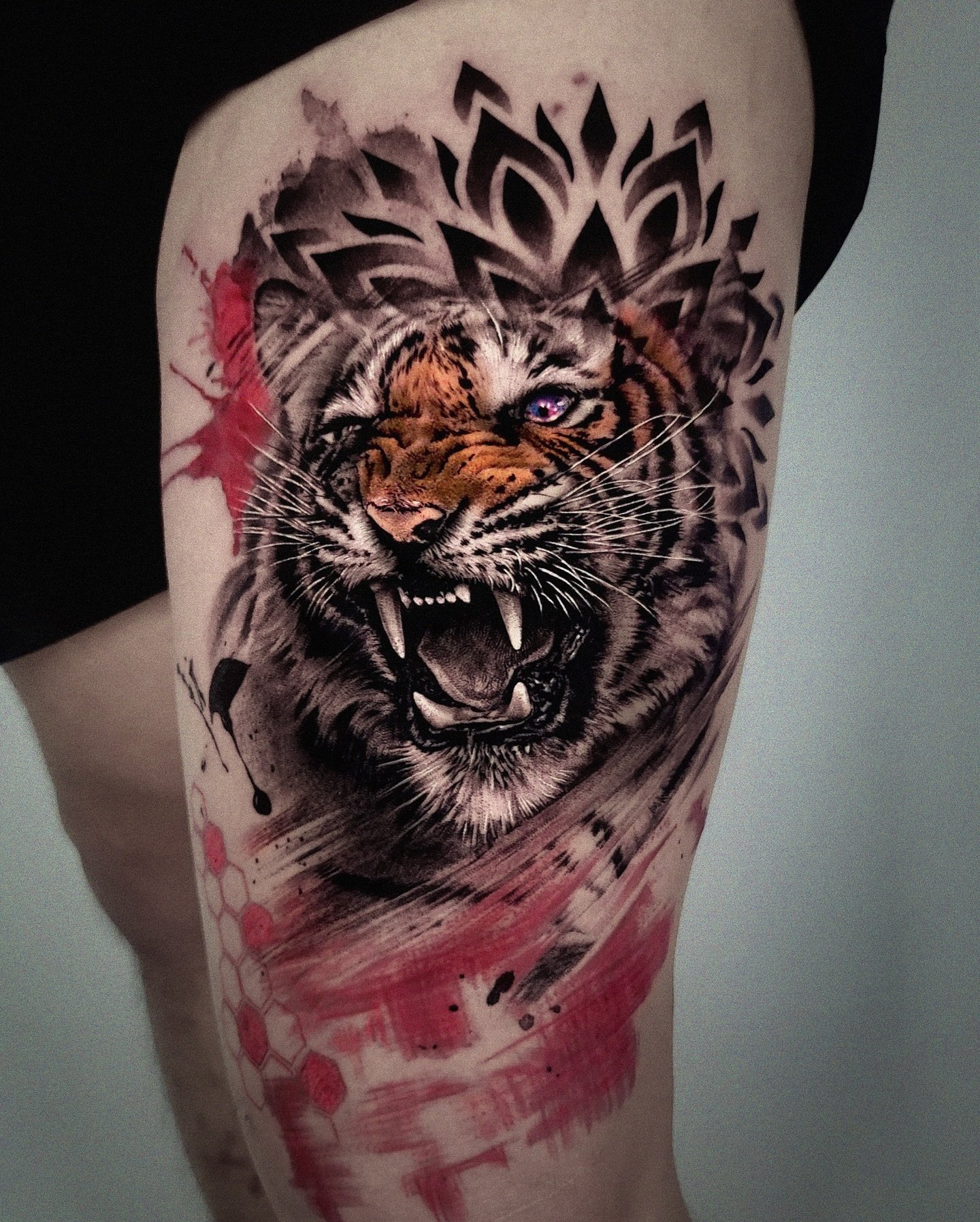- Návrh tygra s vrčením označuje mocichtivou osobu a také to, že majitel tetování nešetří své nepřátele.