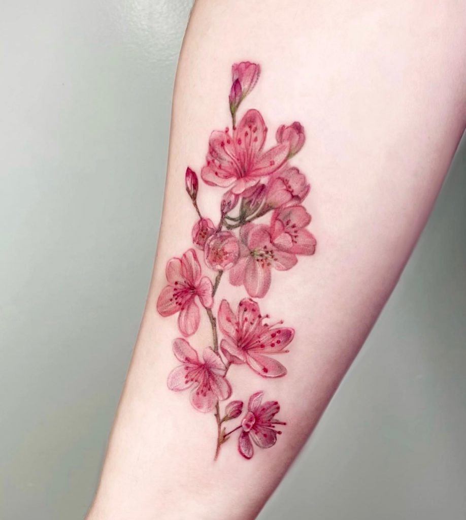 Pokud se bavíme o stromu, kresba může vypadat nejlépe na velkých plochách, samotné květiny budou vypadat skvěle na jakékoli části těla. Náčrt větve sakury vypadá dobře na klíční kosti, zápěstí, předloktí. Vše záleží na vaší fantazii a přání.