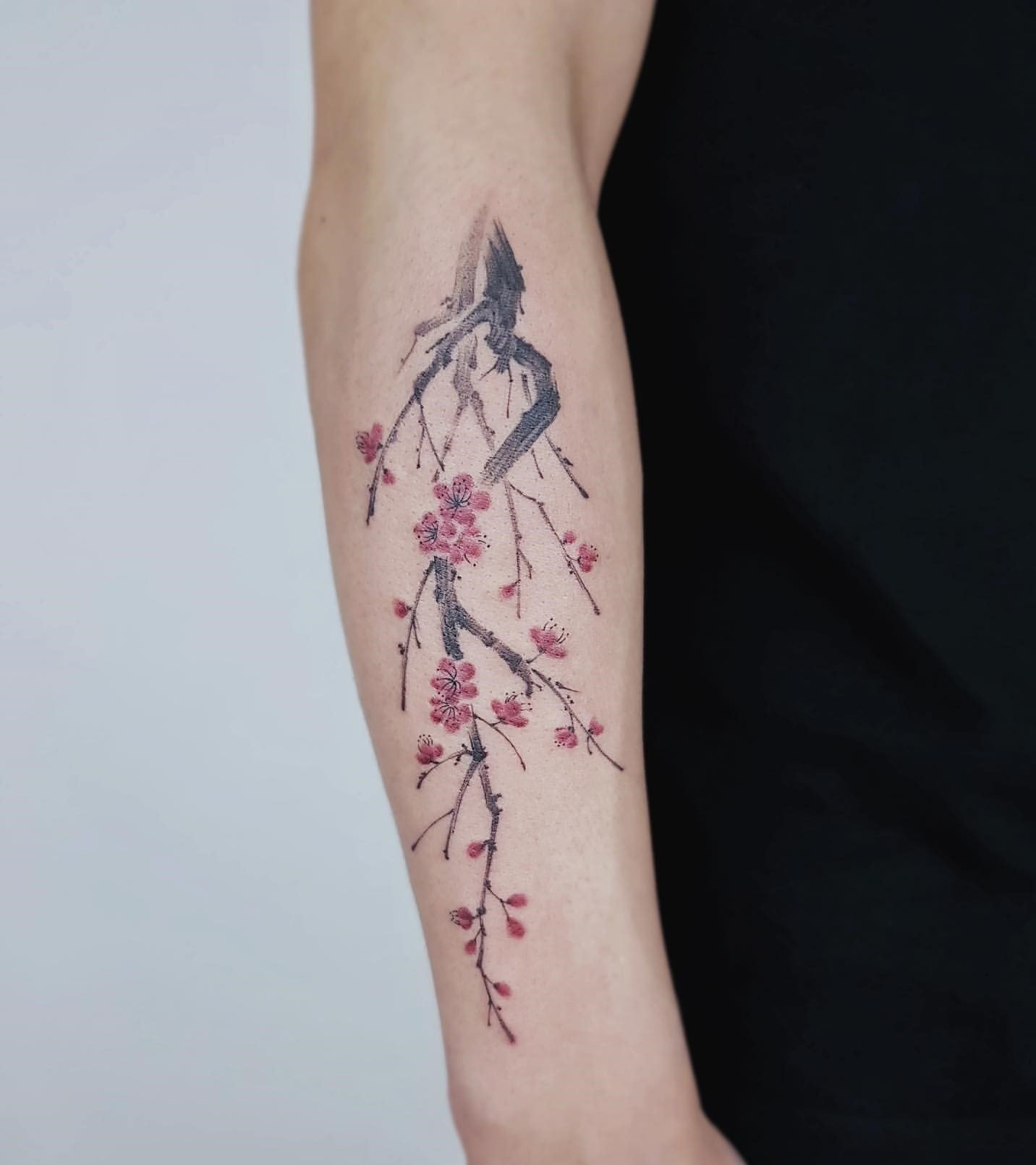 V umění tetování je velmi žádaná nejen větev sakury nebo její květiny, ale také obraz samotného stromu.