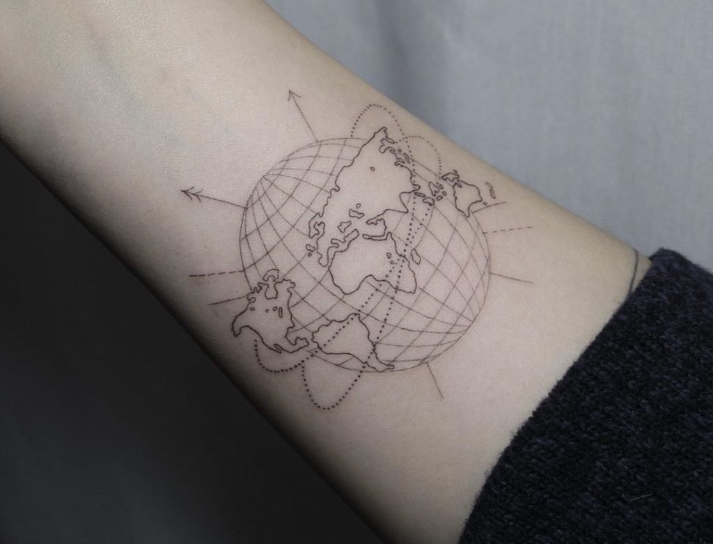 Často se tento obrázek nachází na zápěstí nebo na předloktí. Často si tetování zeměkoule vybírají lidé, kteří profesionálně cestují po celém světě, zejména ti, kterým se podařilo překročit rovník. Kromě cestování je tetování zeměkoule spojeno s harmonií a integritou světa. Toto spojení označuje nekonečnost a nedělitelnost planety. Ale stojí za zmínku, že označení tohoto tetování nekončí. Další prvky obrázku také ovlivňují význam tetování.