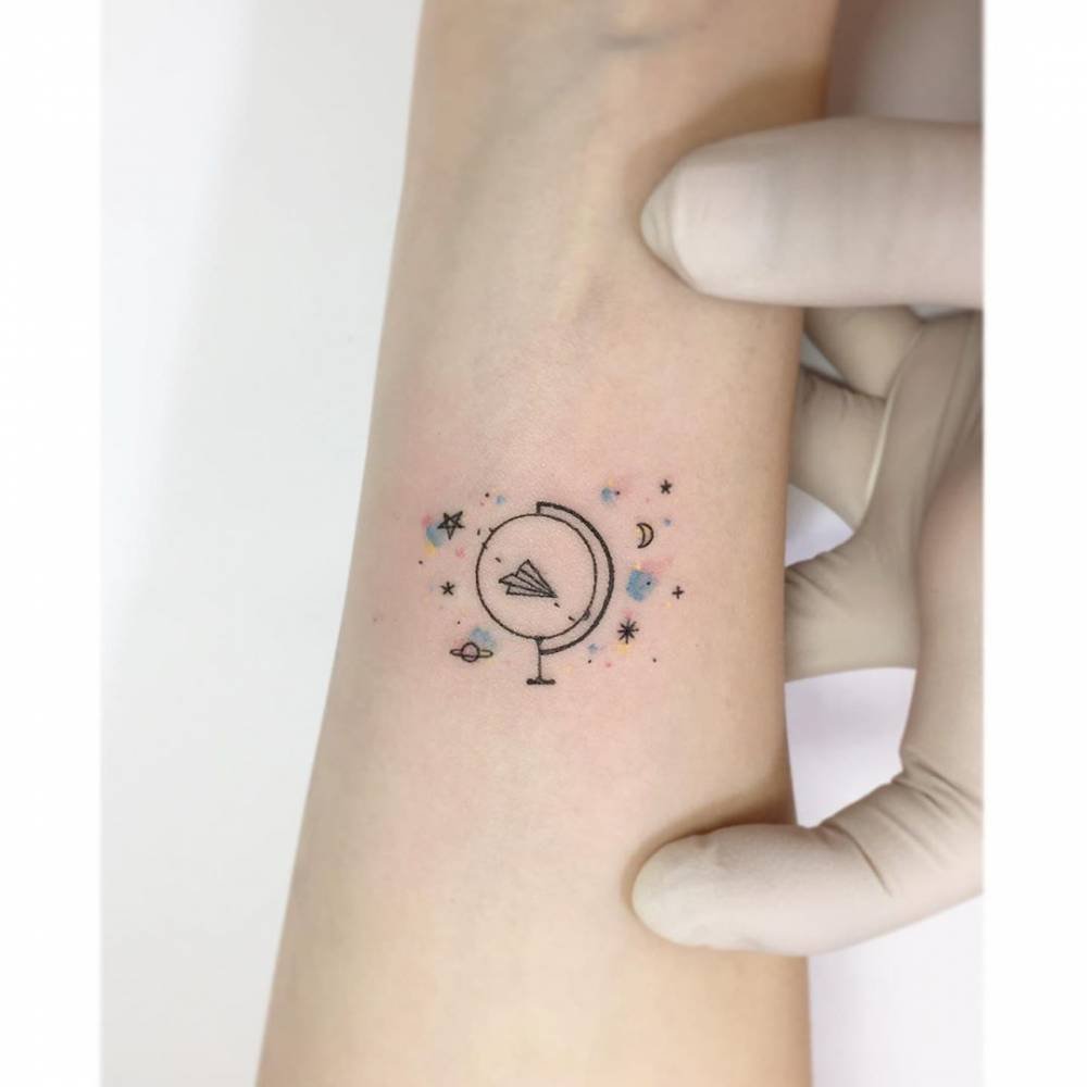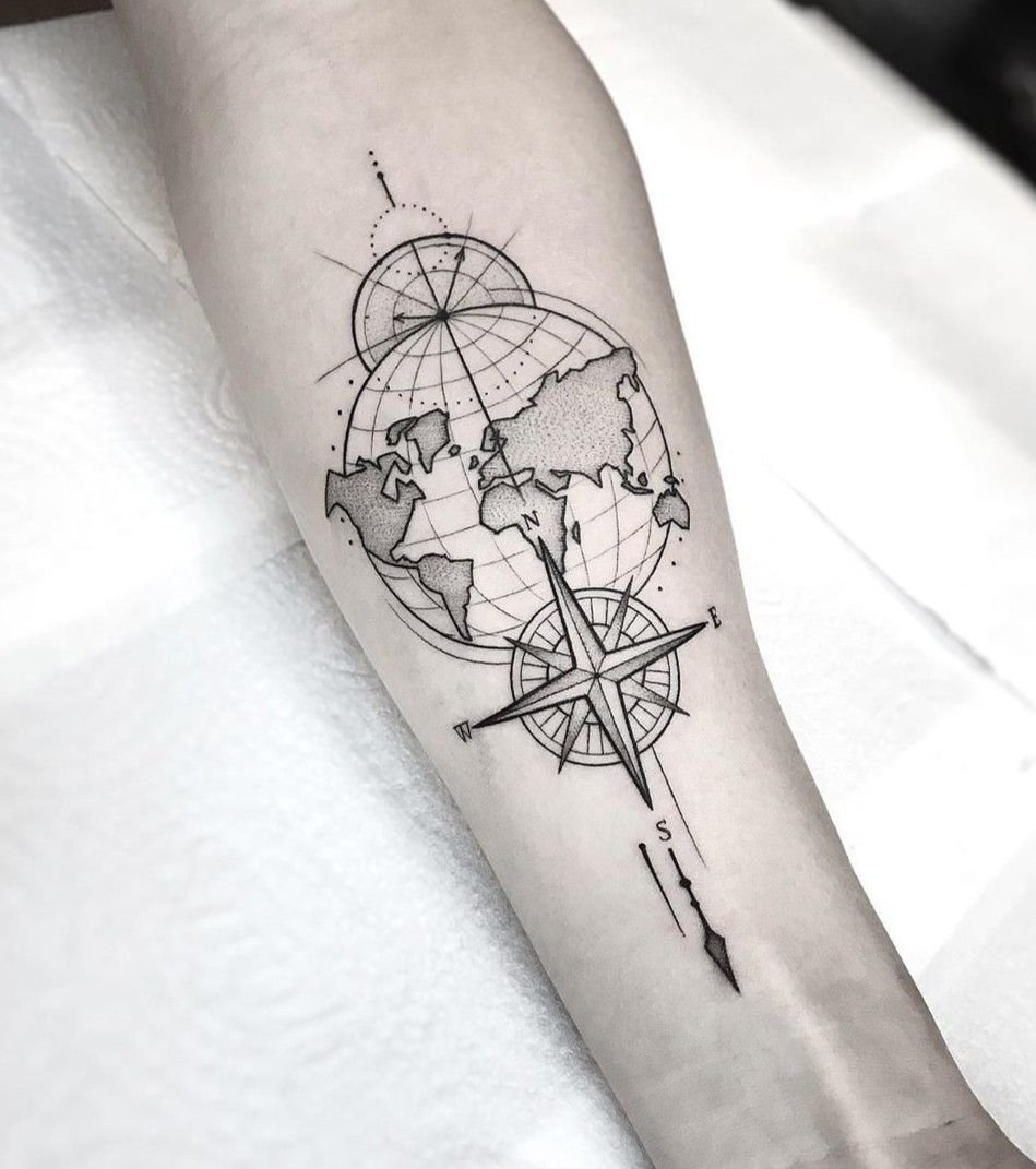 Univerzální tetování se zeměkoulí zpravidla znamená touhu po cestování, dobrodružství, seznámení s novým neznámým světem.