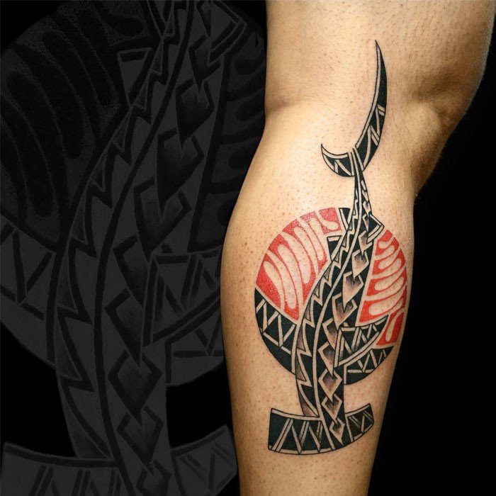 - Tetování v polynéském stylu je barevné a bohaté. Kresby jsou složeny z ornamentálních prvků, často po sobě jdoucích - tahy, čary, klikatky, vlny. Takové obrázky vypadají masivně, agresivně. A umísťují se na zápěstí, nohou, hrudníku a zádech.